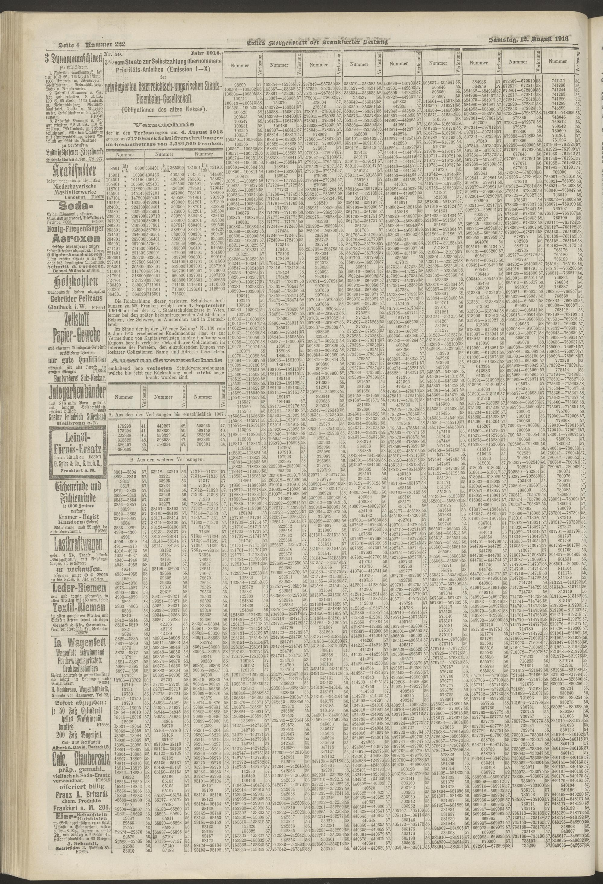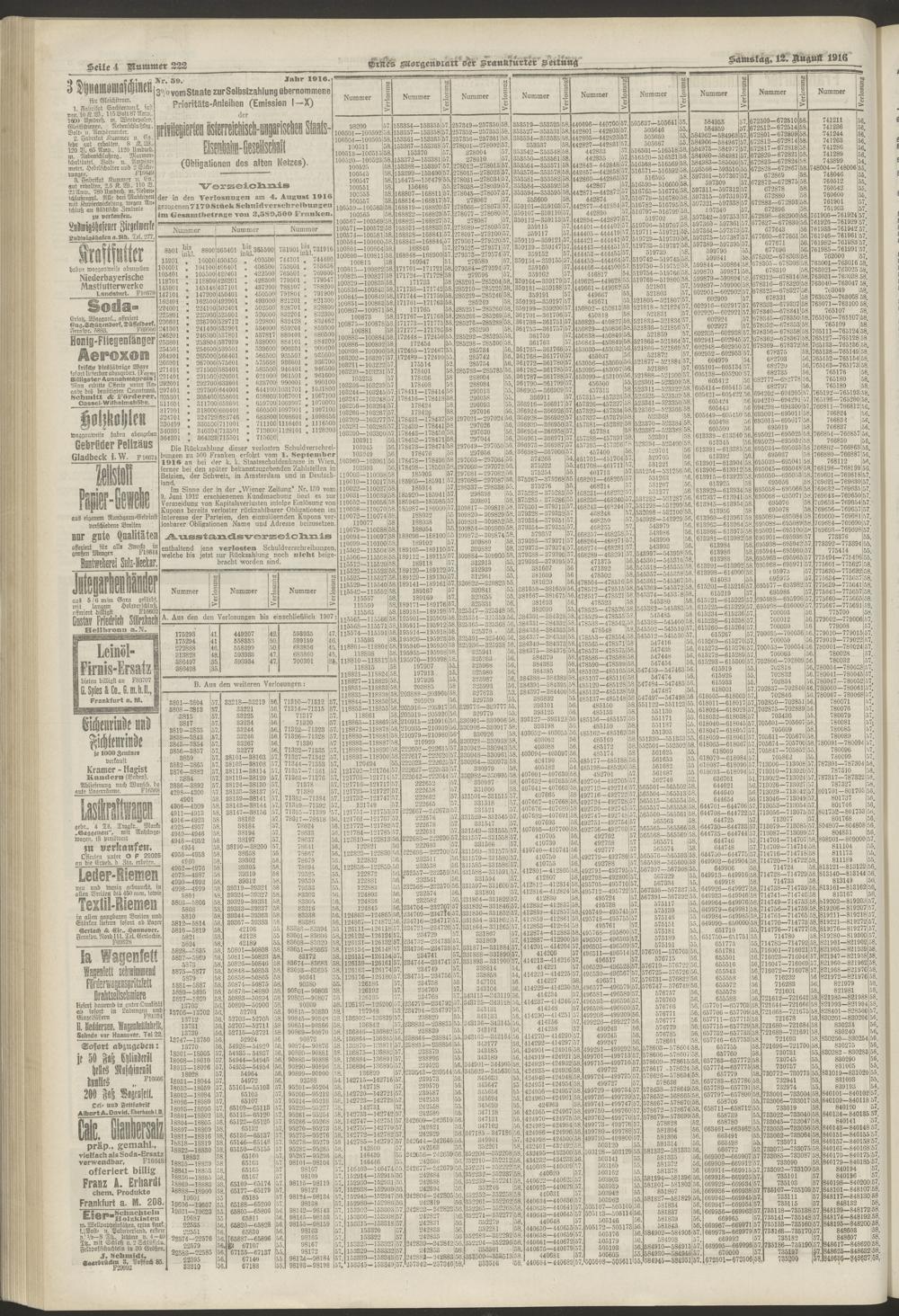 12.08.1916 = Nr. 222. Erstes Morgenblatt