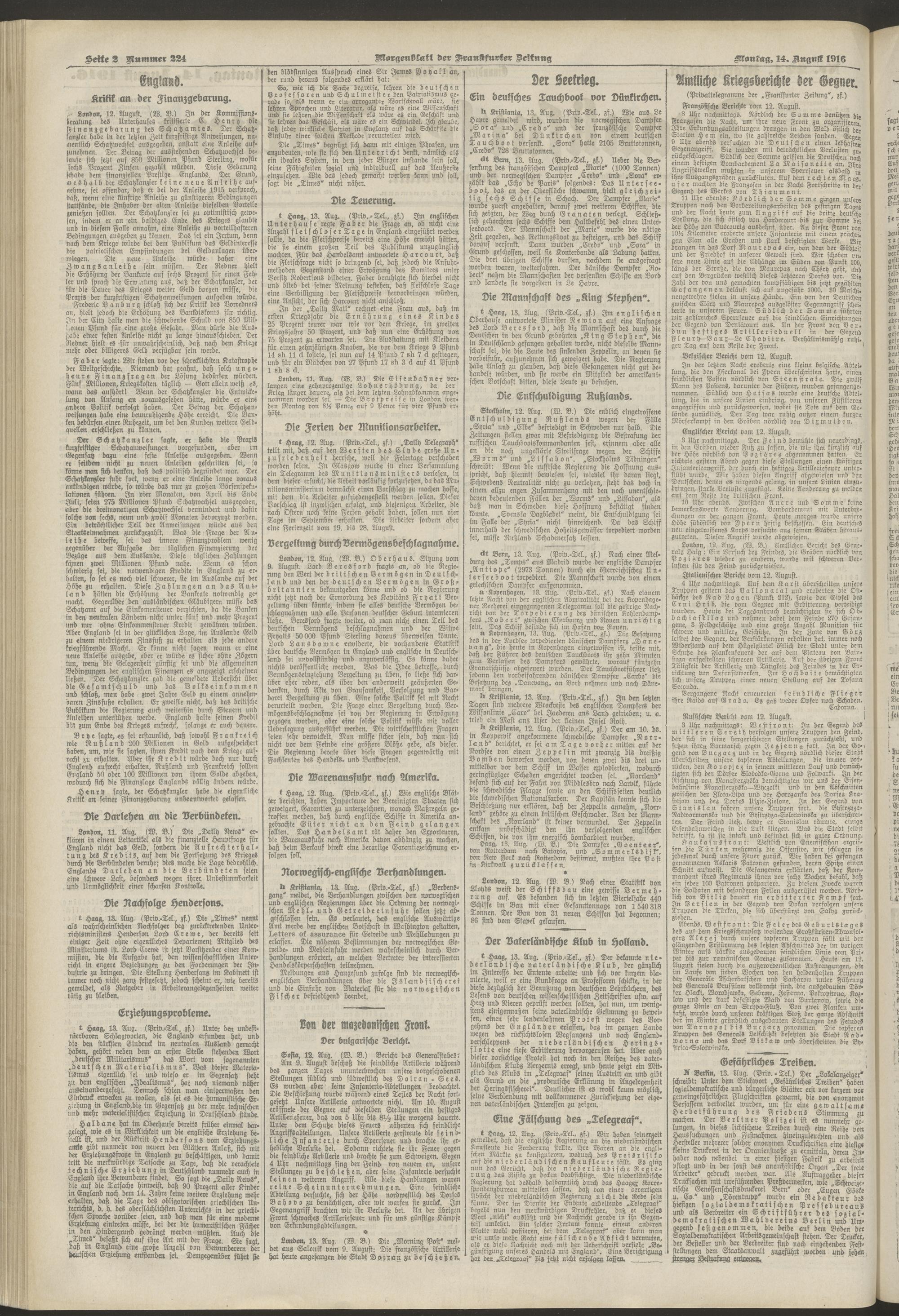 14.08.1916 = Nr. 224. Morgenblatt
