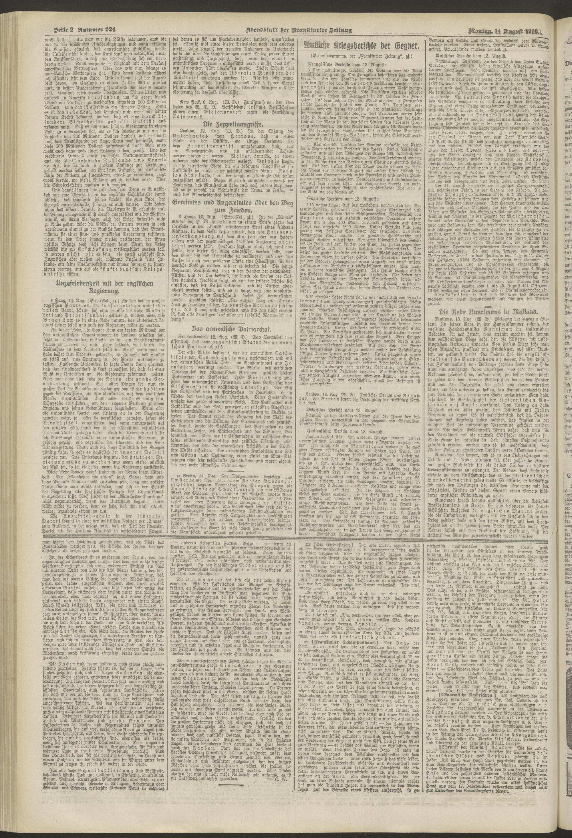 14.08.1916 = Nr. 224. Abendblatt