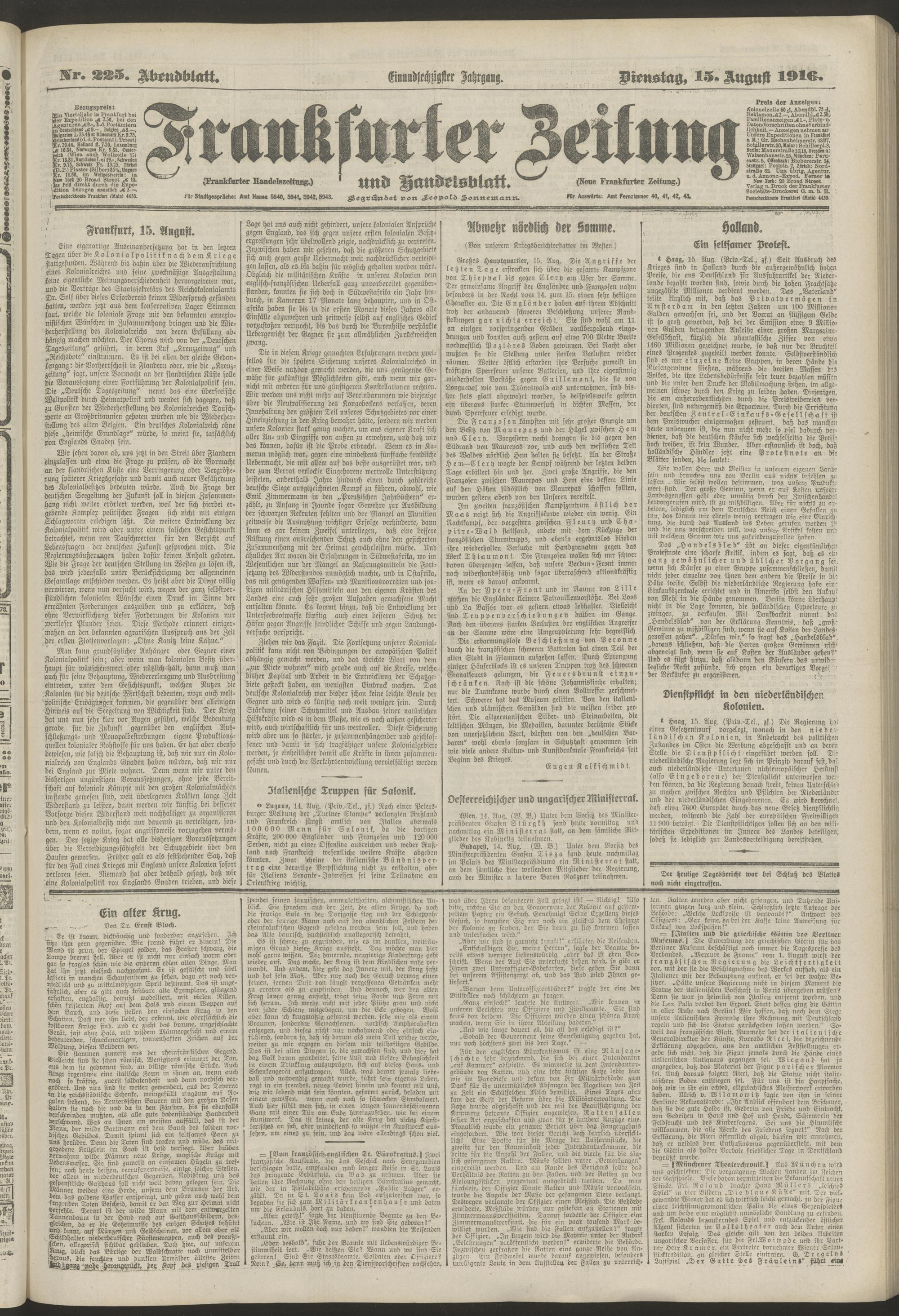 15.08.1916 = Nr. 225. Abendblatt
