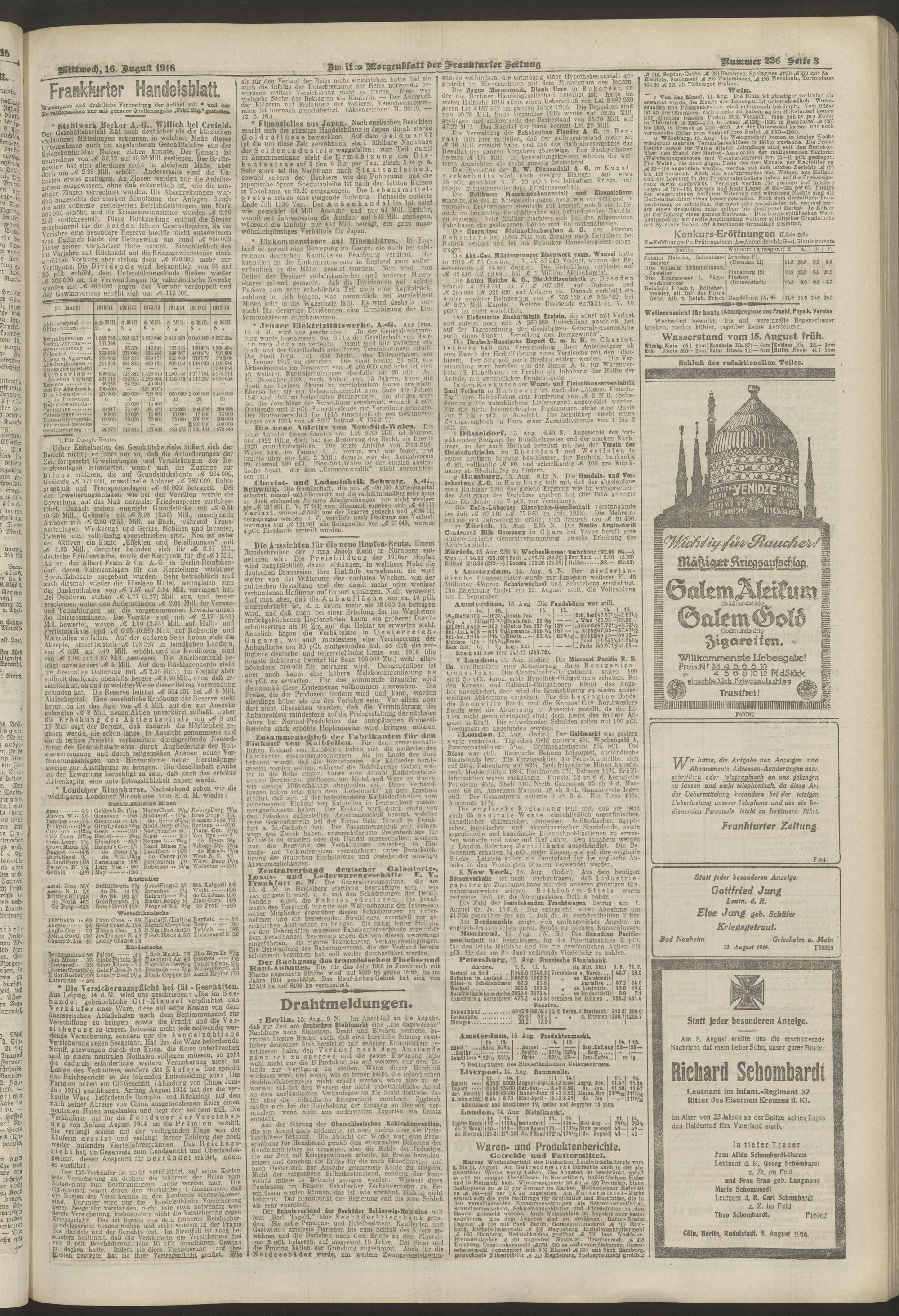 16.08.1916 = Nr. 226. Zweites Morgenblatt