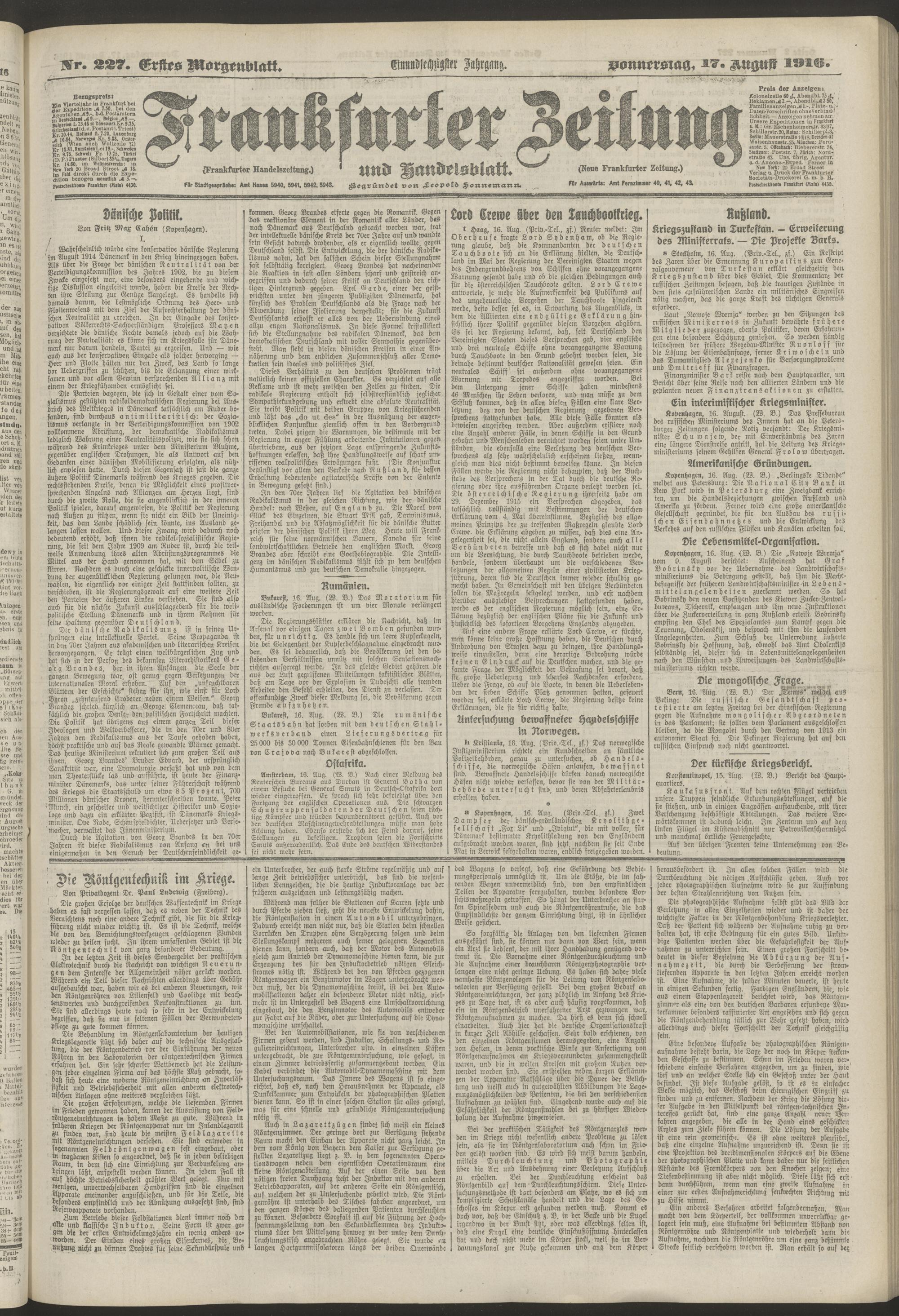 17.08.1916 = Nr. 227. Erstes Morgenblatt