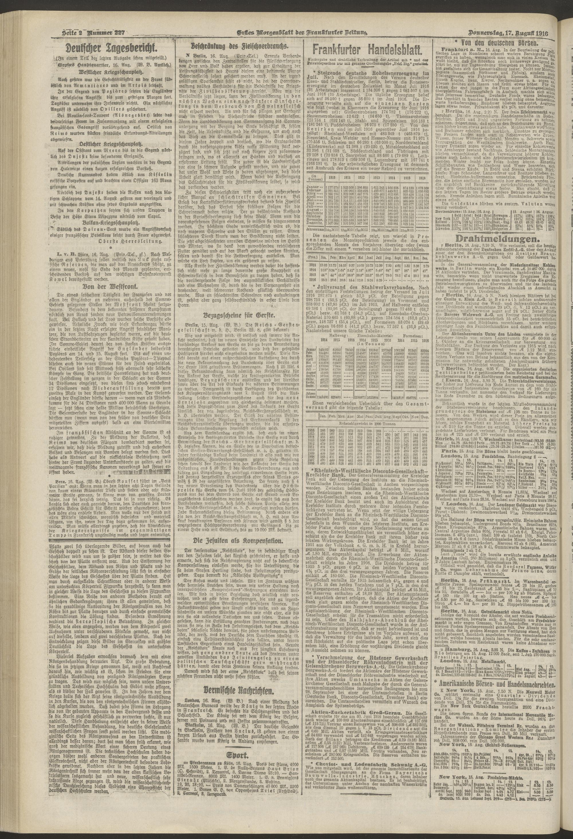 17.08.1916 = Nr. 227. Erstes Morgenblatt