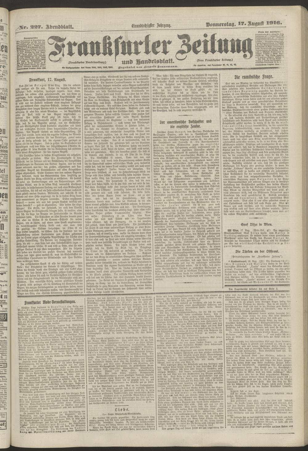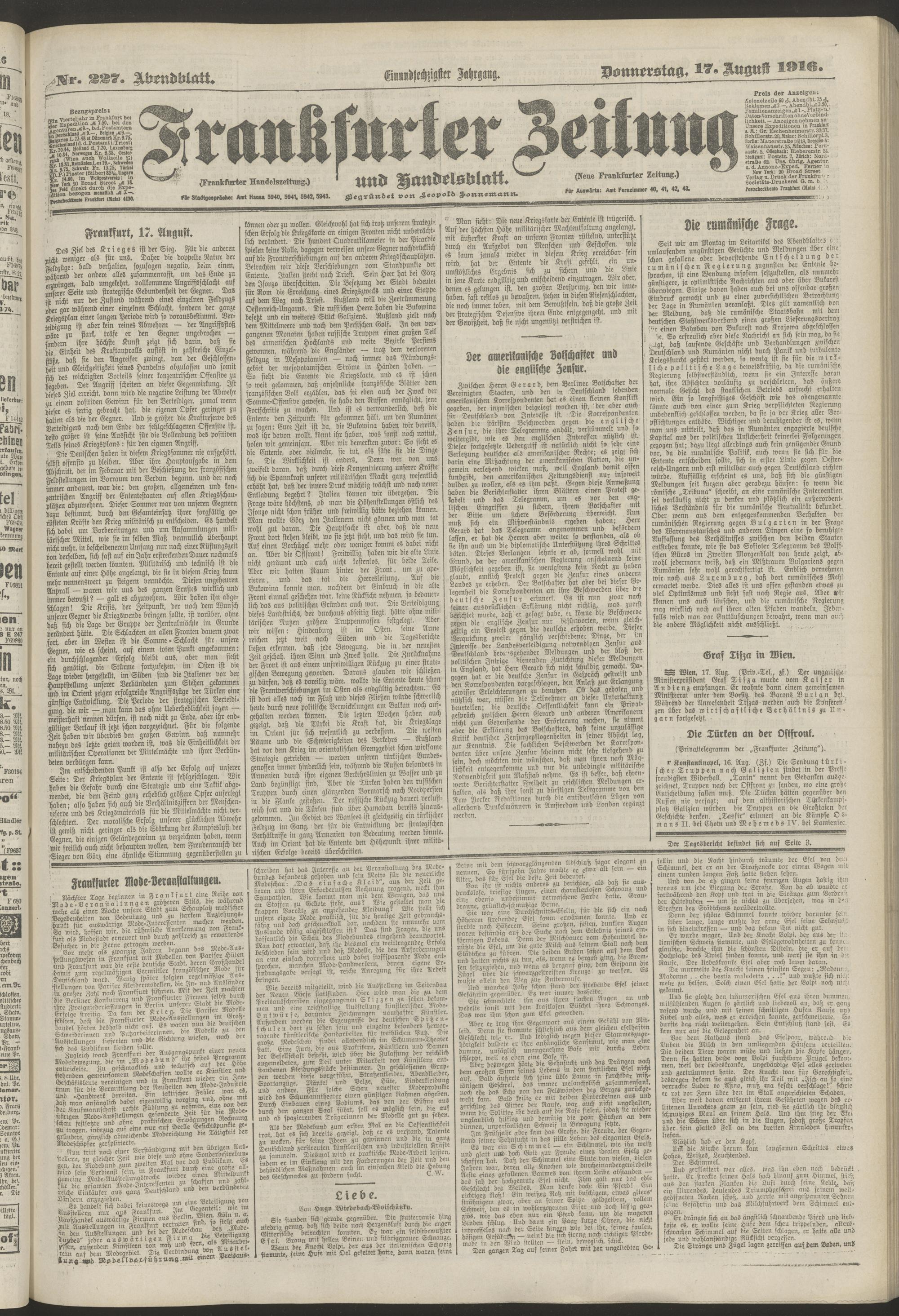 17.08.1916 = Nr. 227. Abendblatt