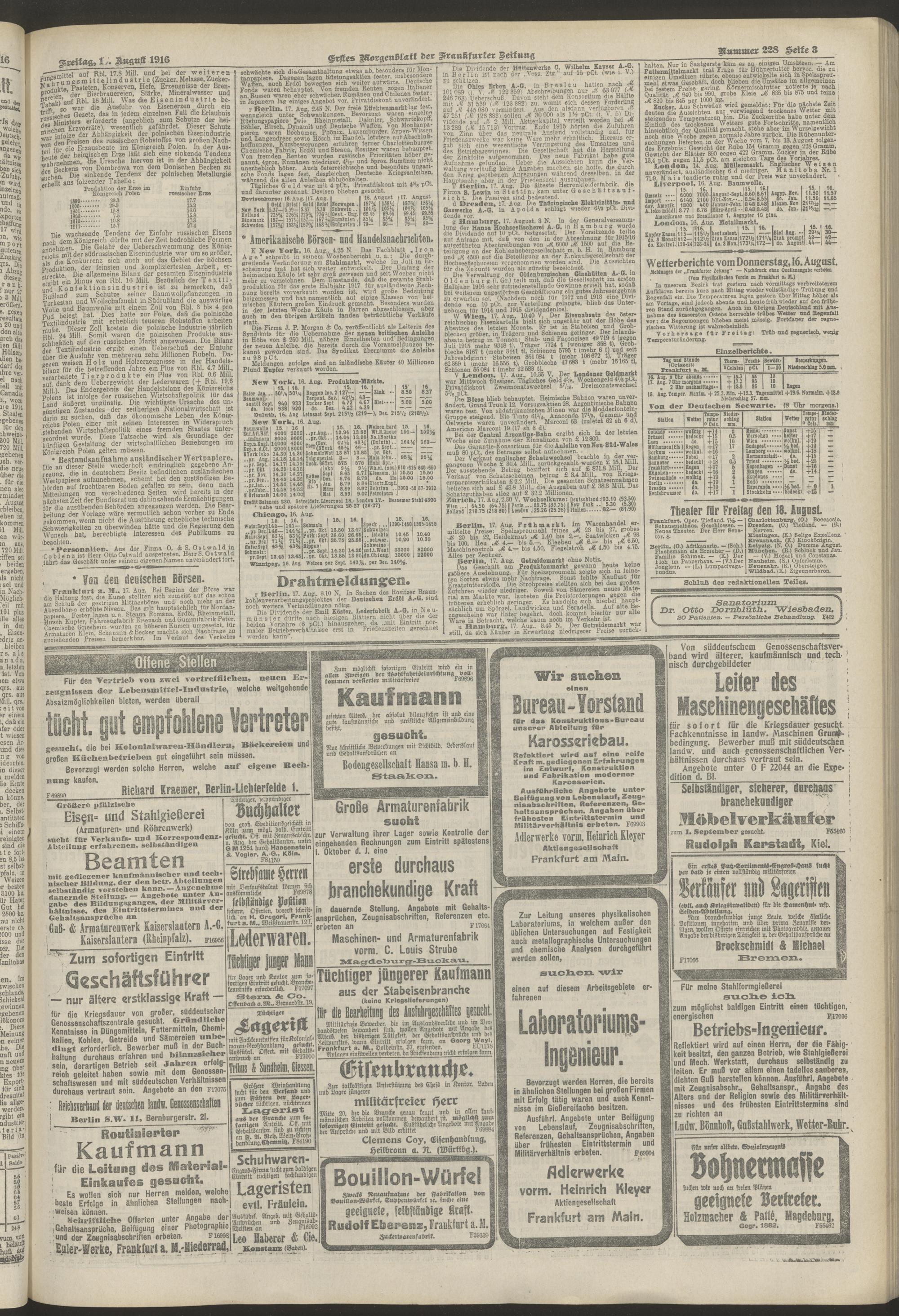 18.08.1916 = Nr. 228. Erstes Morgenblatt