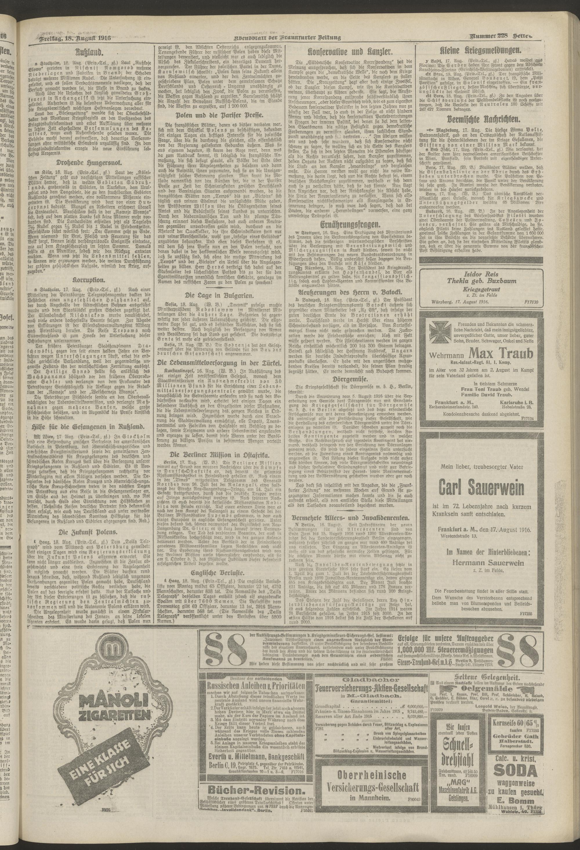18.08.1916 = Nr. 228. Abendblatt