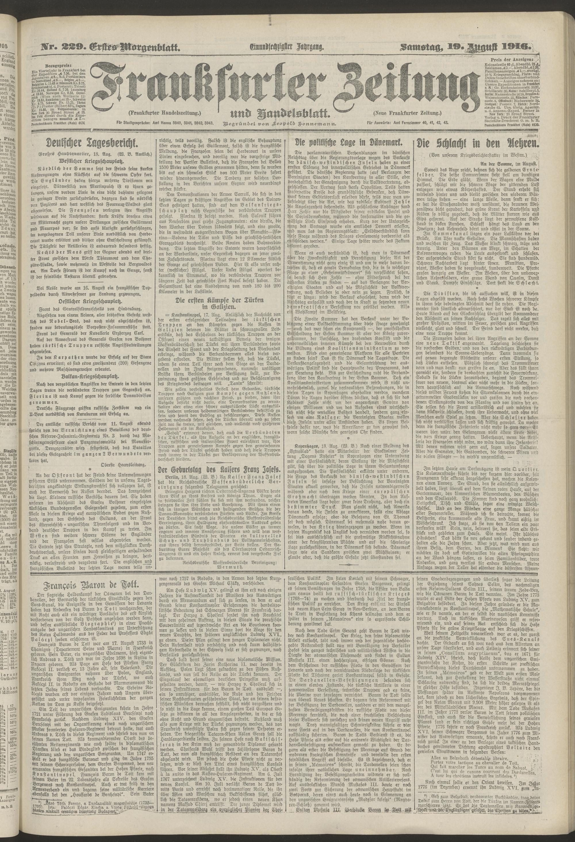 19.08.1916 = Nr. 229. Erstes Morgenblatt