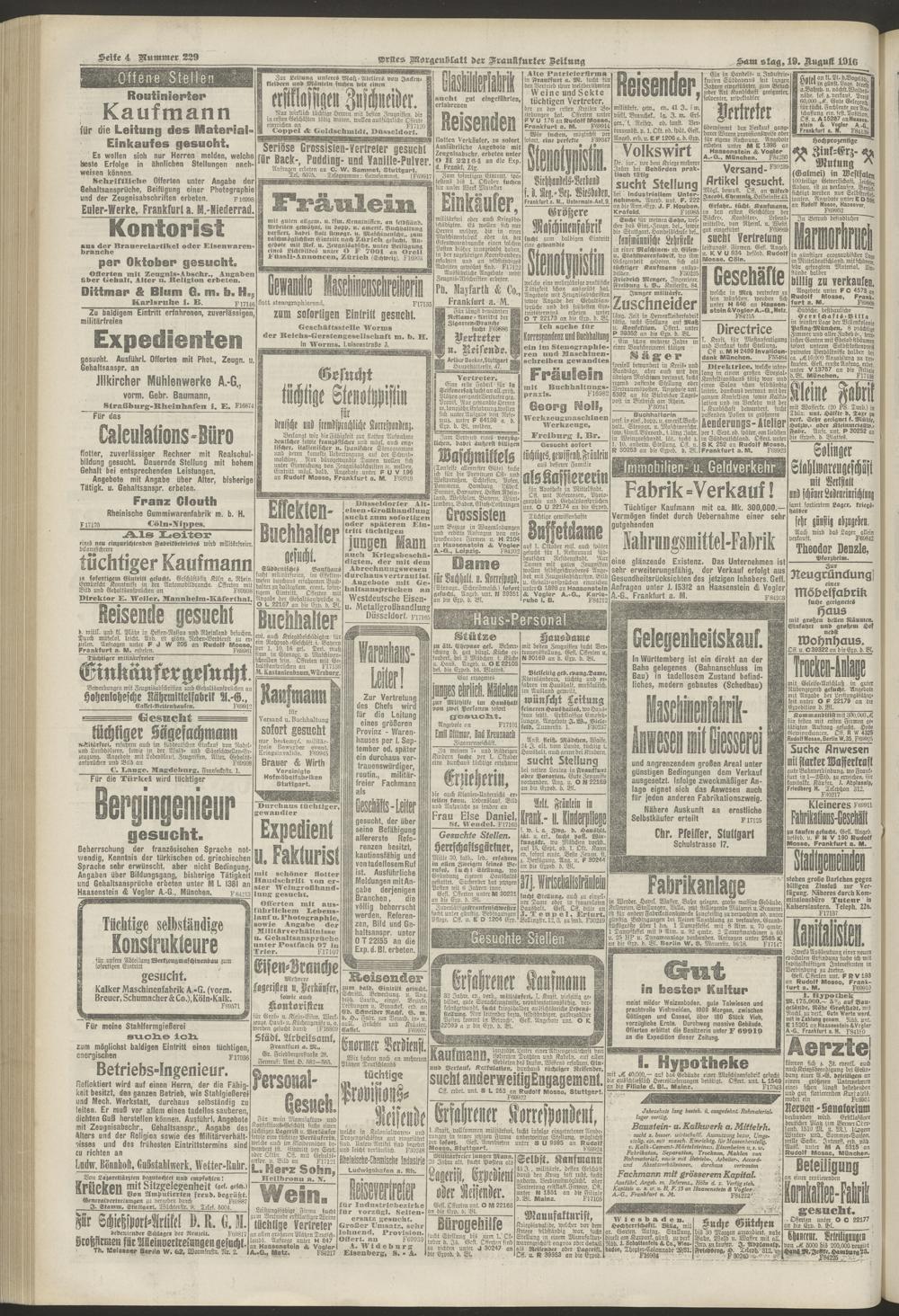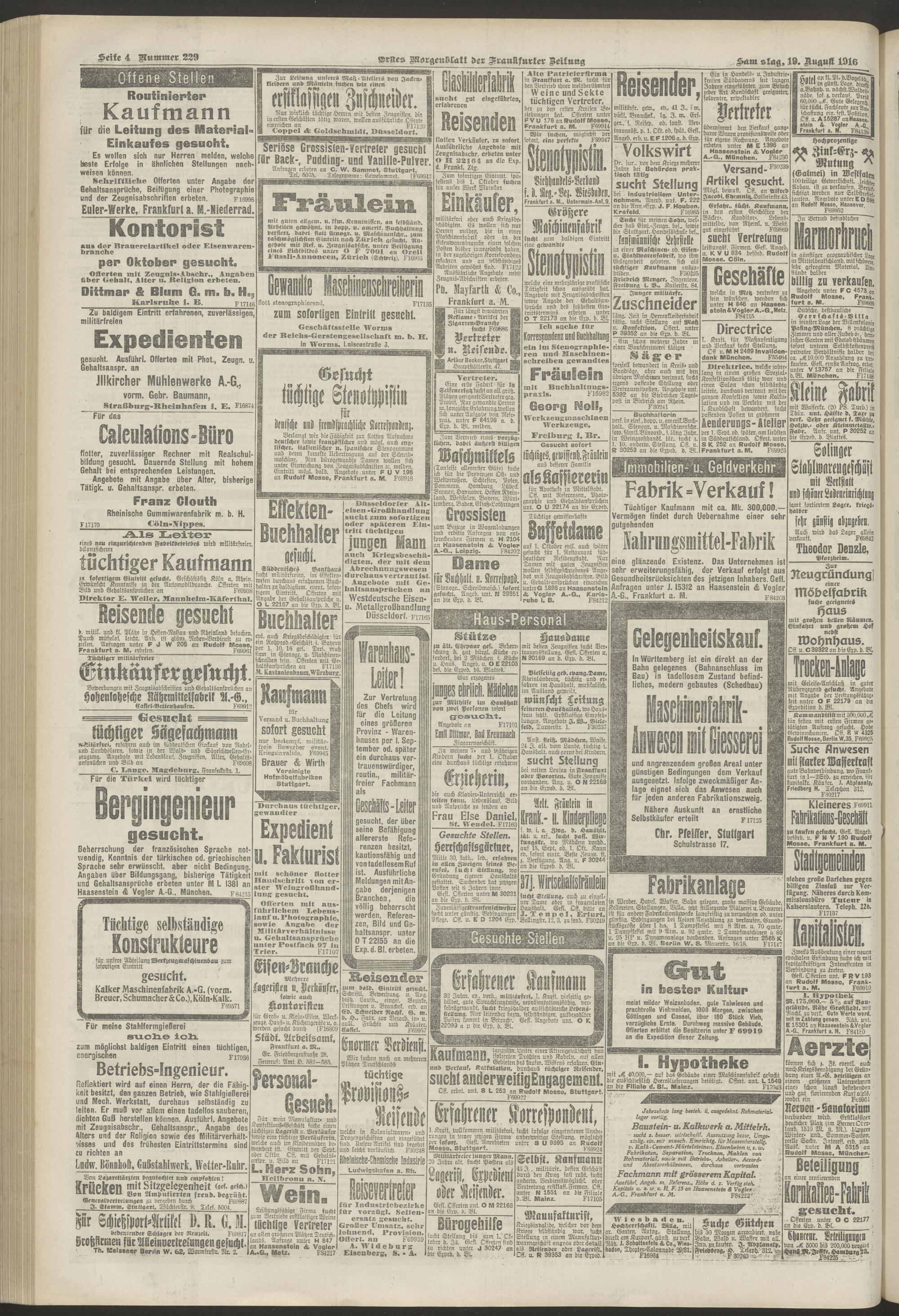 19.08.1916 = Nr. 229. Erstes Morgenblatt