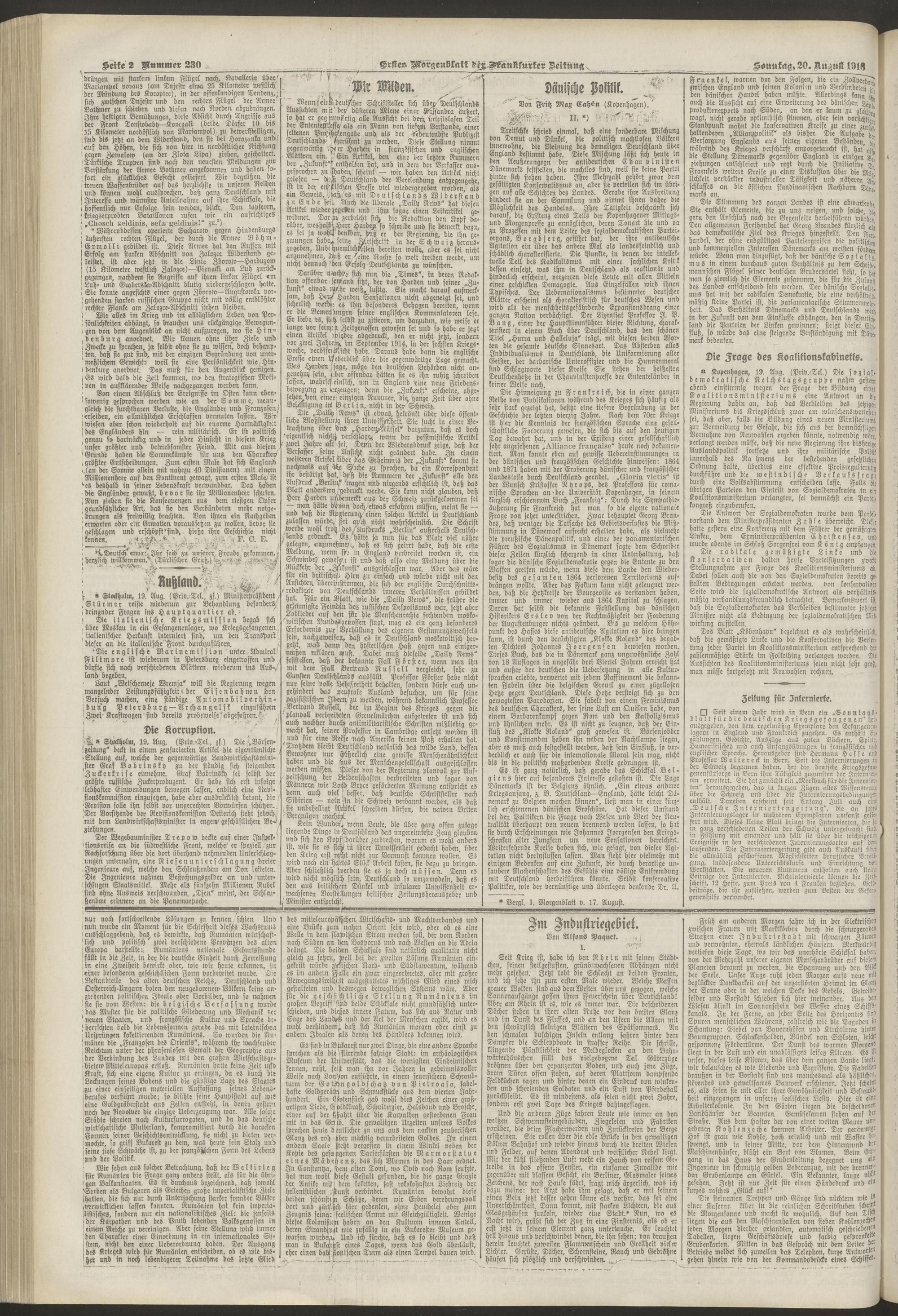 20.08.1916 = Nr. 230. Erstes Morgenblatt