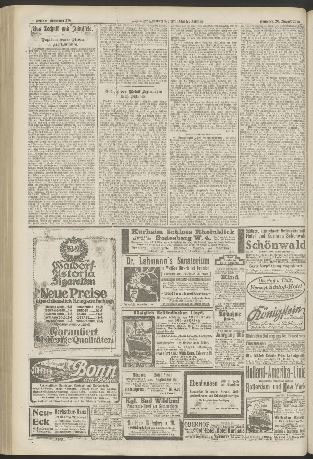 20.08.1916 = Nr. 230. Erstes Morgenblatt