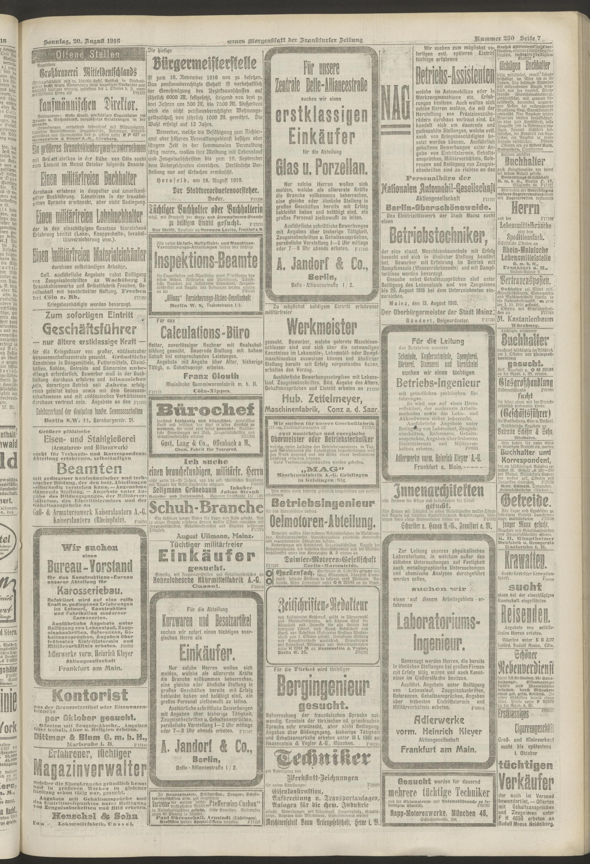 20.08.1916 = Nr. 230. Erstes Morgenblatt