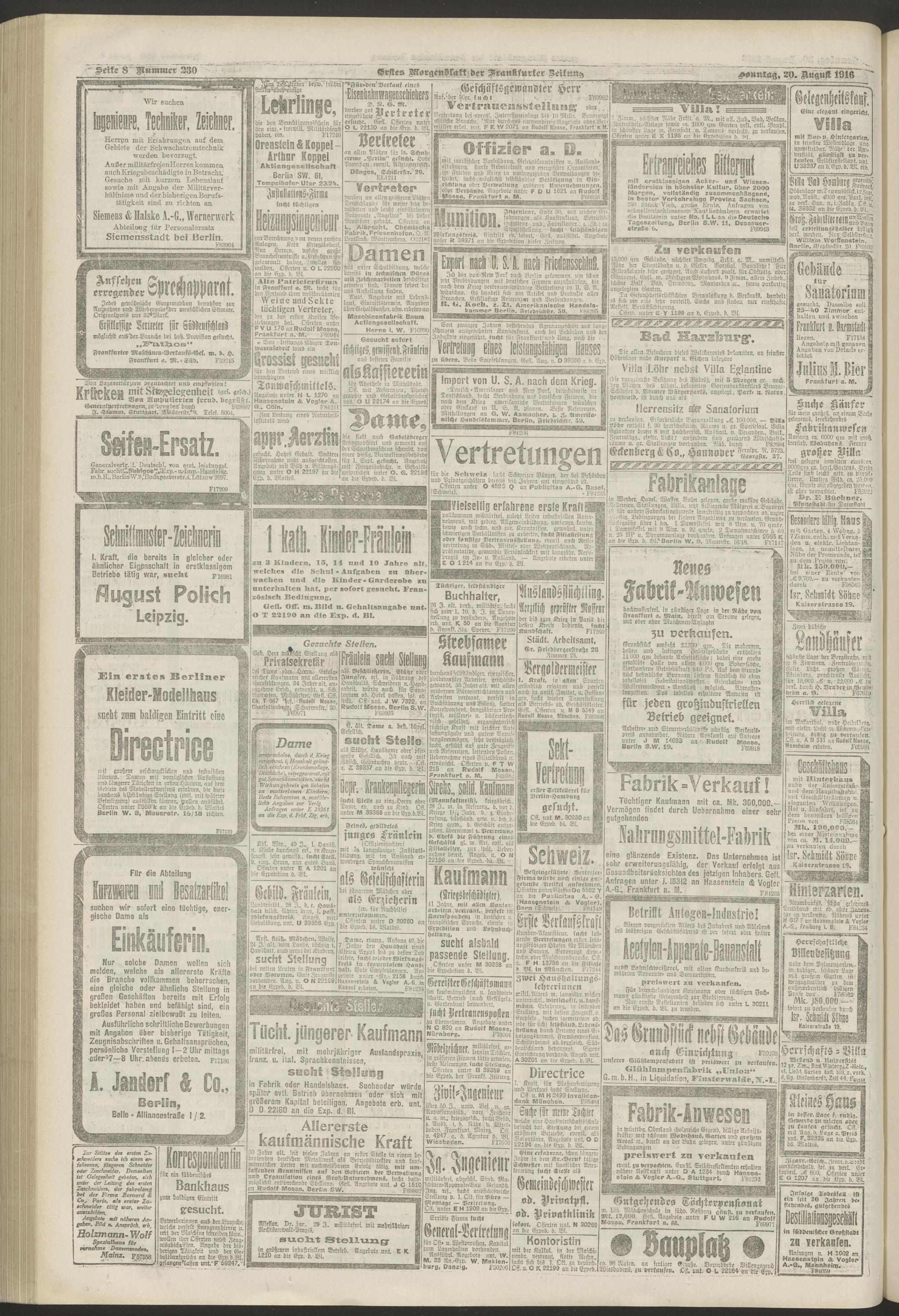 20.08.1916 = Nr. 230. Erstes Morgenblatt