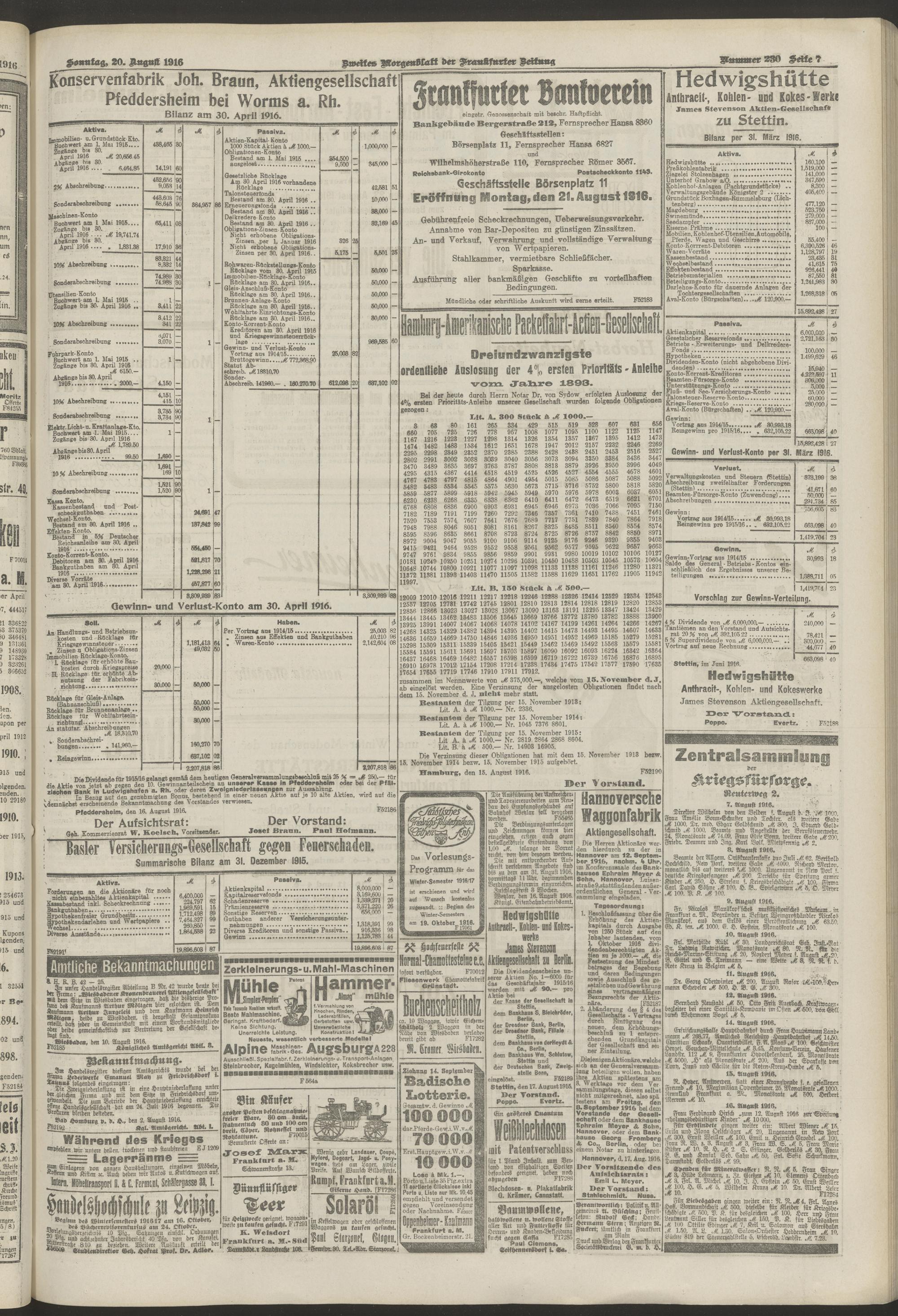 20.08.1916 = Nr. 230. Zweites Morgenblatt