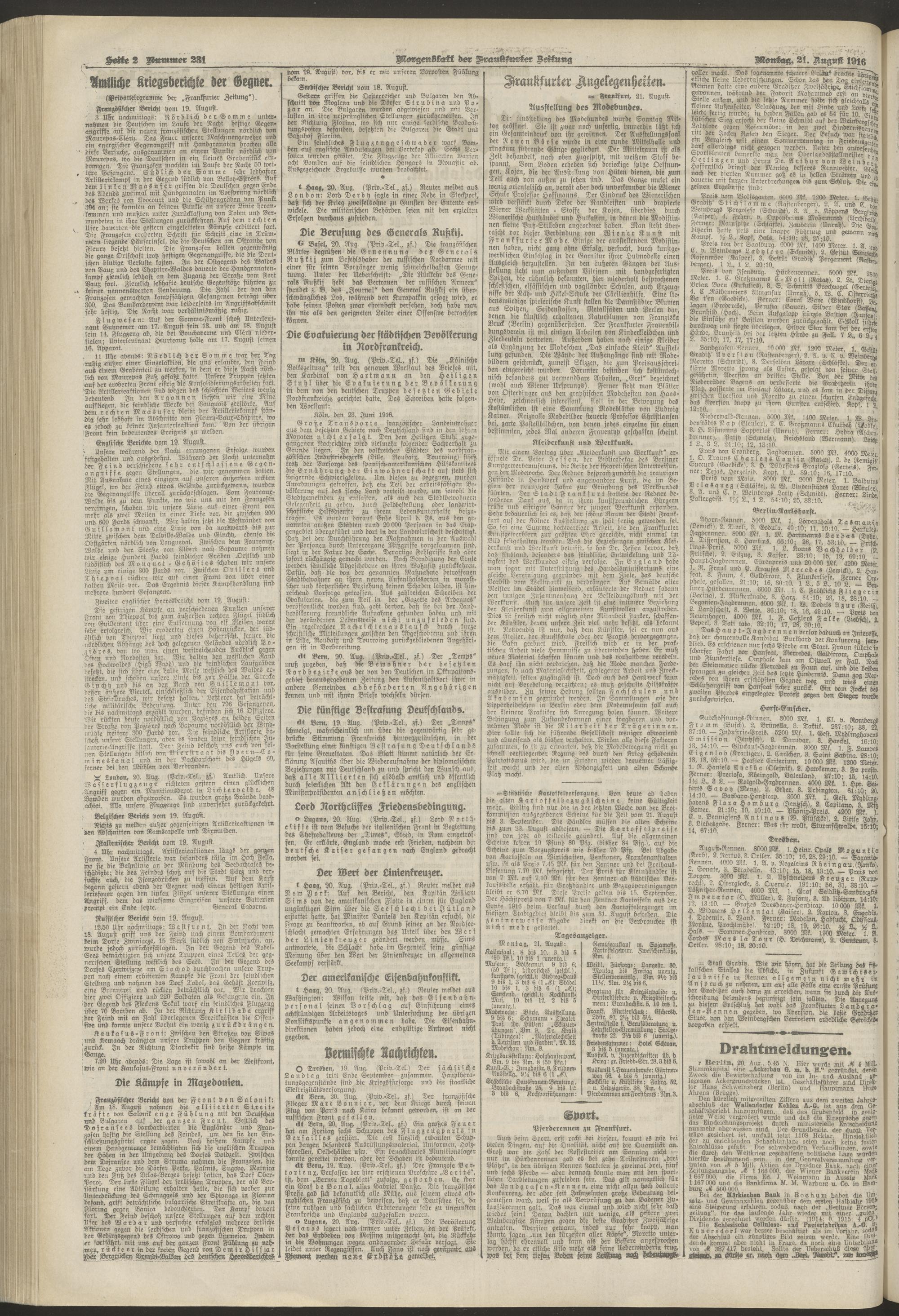 21.08.1916 = Nr. 231. Morgenblatt