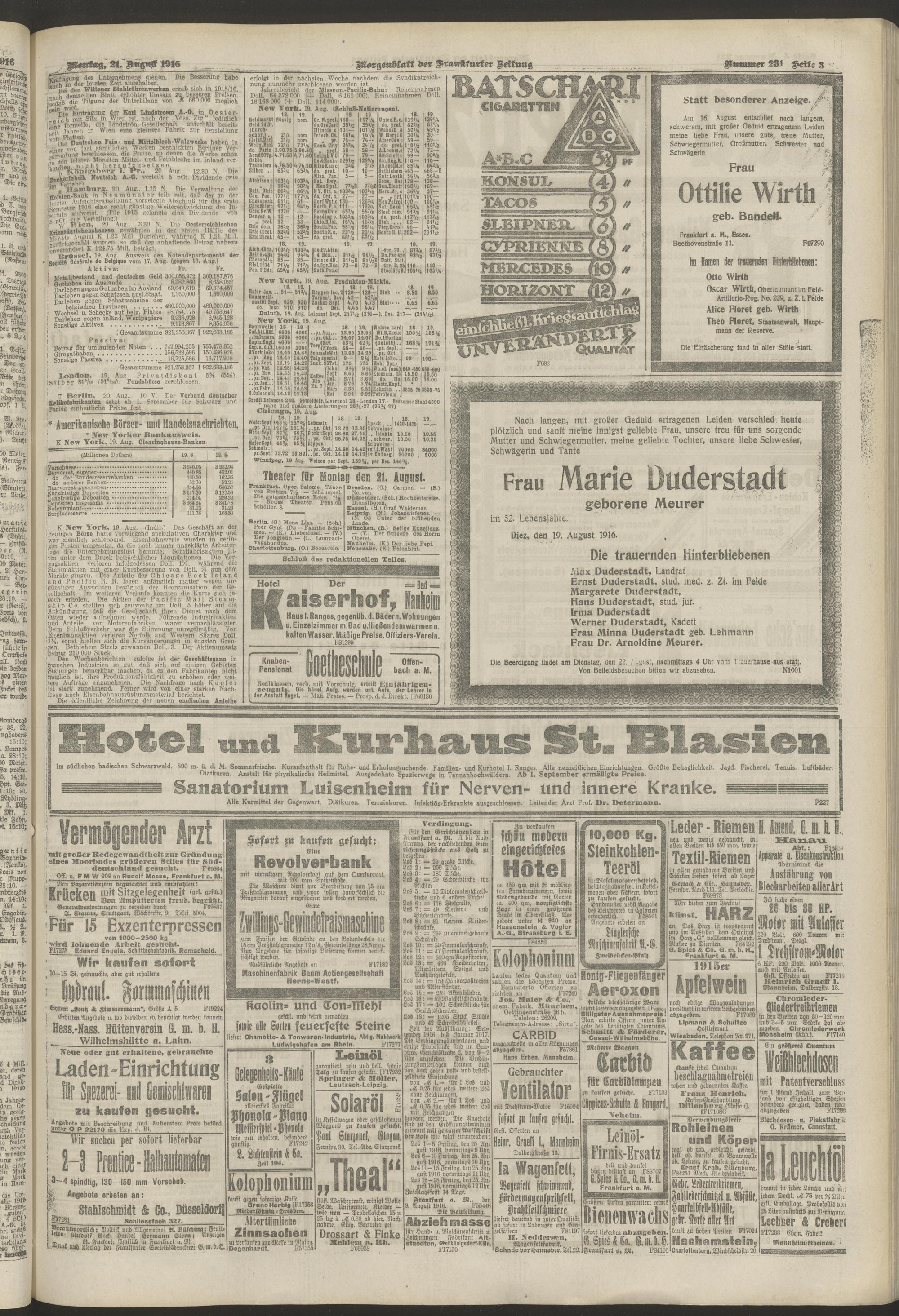 21.08.1916 = Nr. 231. Morgenblatt