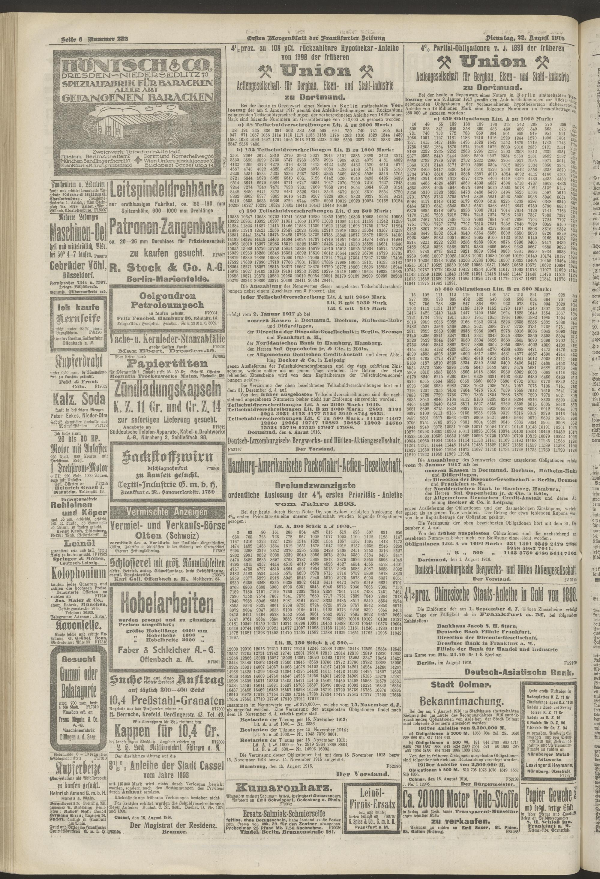 22.08.1916 = Nr. 232. Erstes Morgenblatt