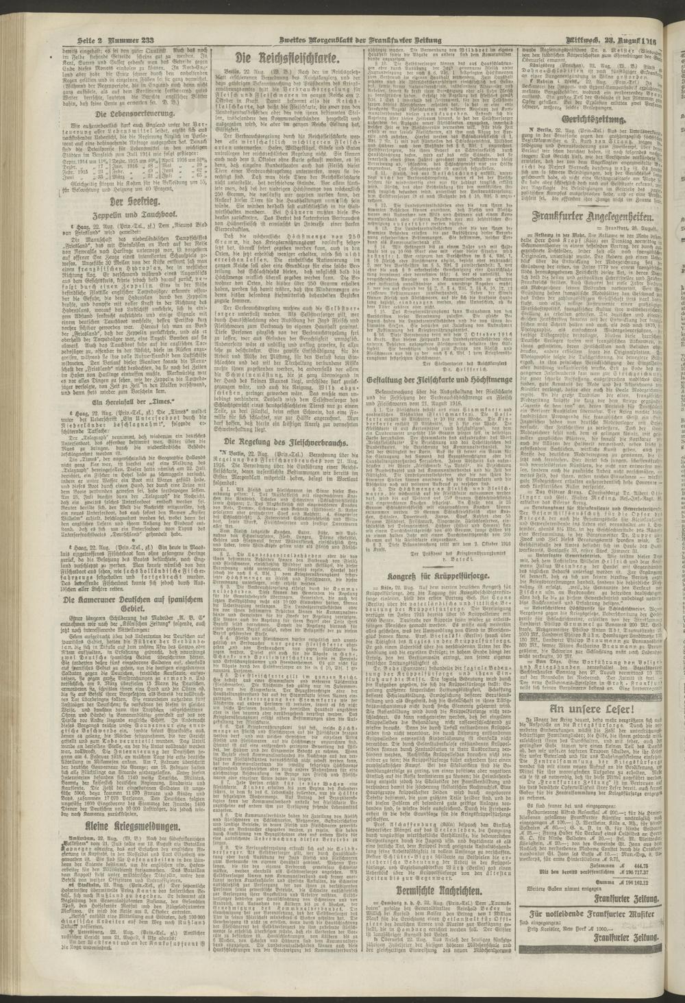 23.08.1916 = Nr. 233. Zweites Morgenblatt