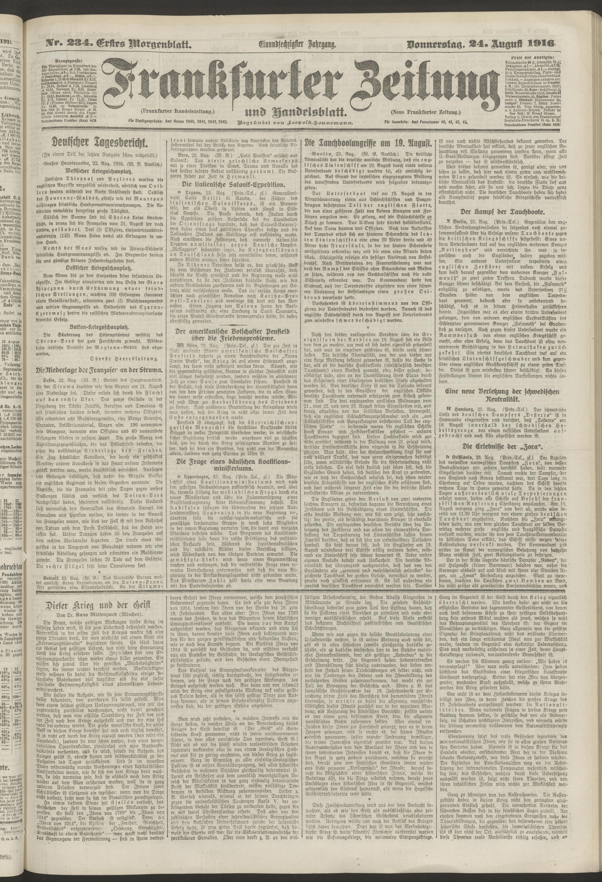 24.08.1916 = Nr. 234 Erstes Morgenblatt