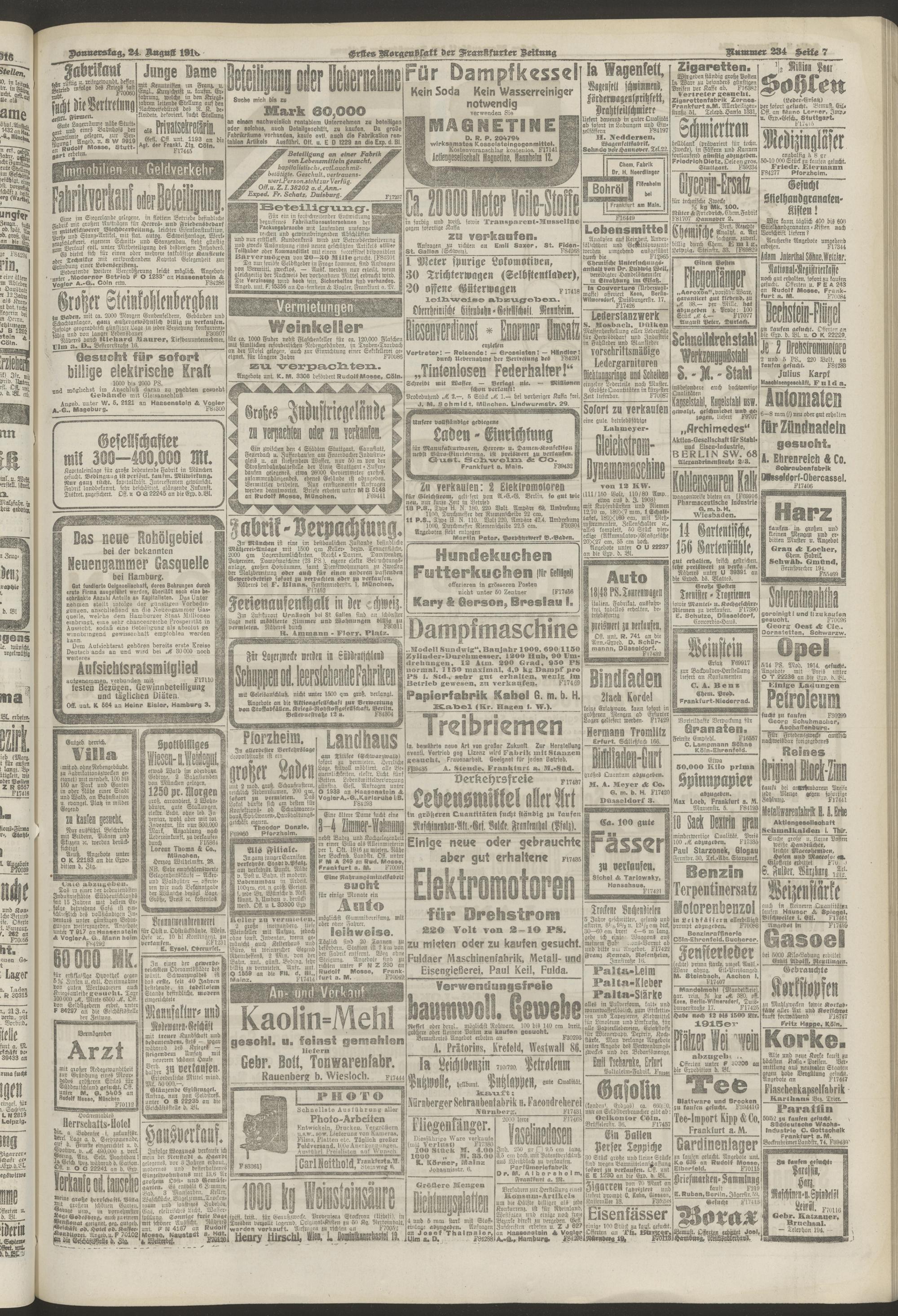24.08.1916 = Nr. 234 Erstes Morgenblatt