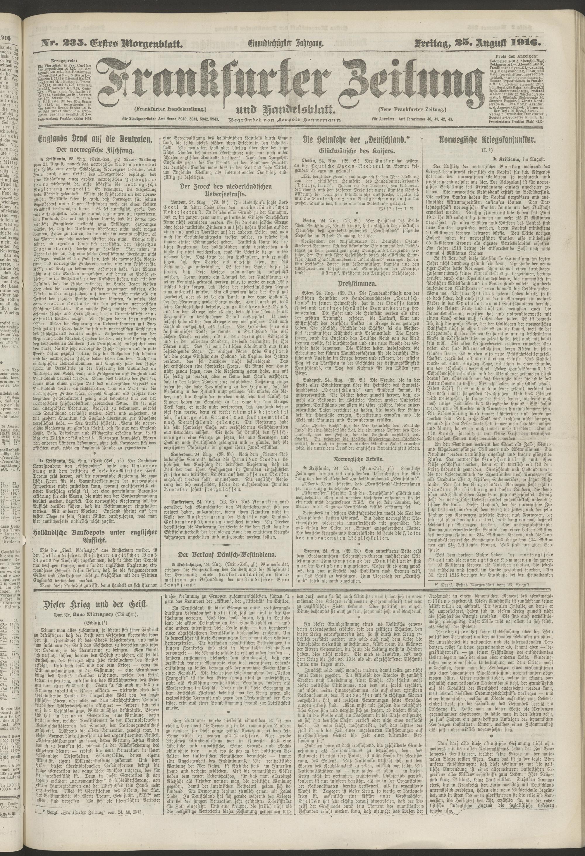25.08.1916 = Nr. 235. Erstes Morgenblatt
