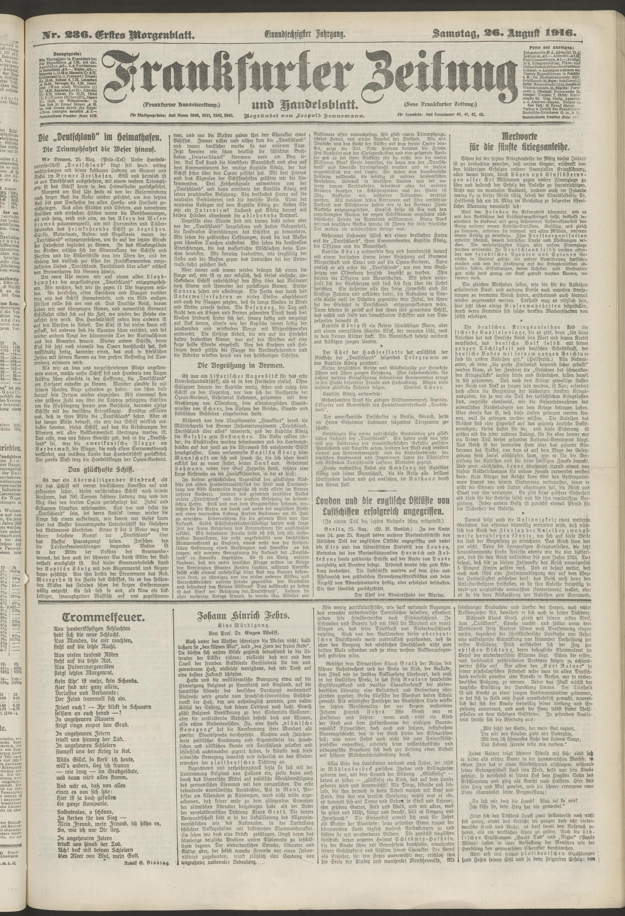 26.08.1916 = Nr. 236. Erstes Morgenblatt
