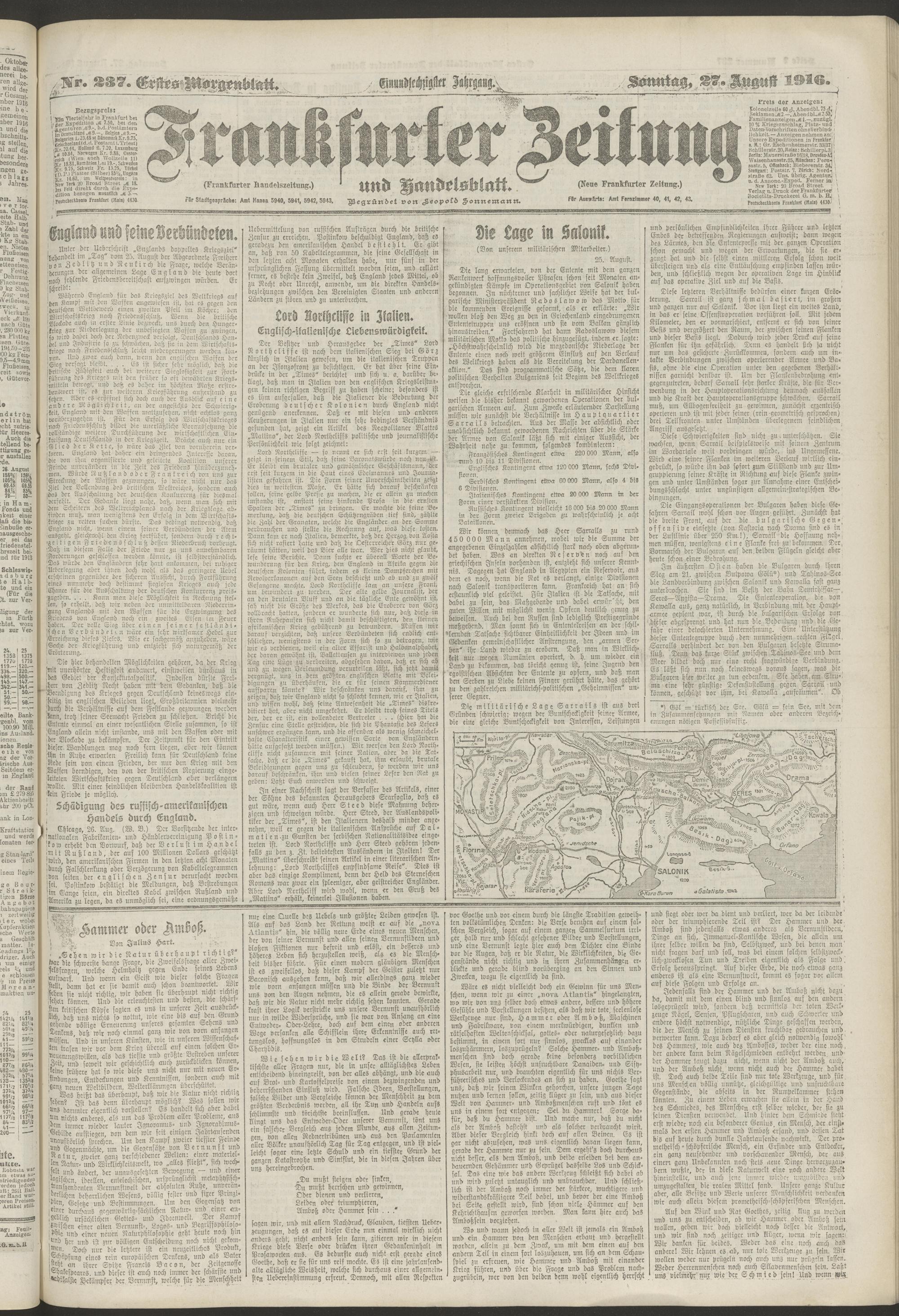 27.08.1916 = Nr. 237. Erstes Morgenblatt