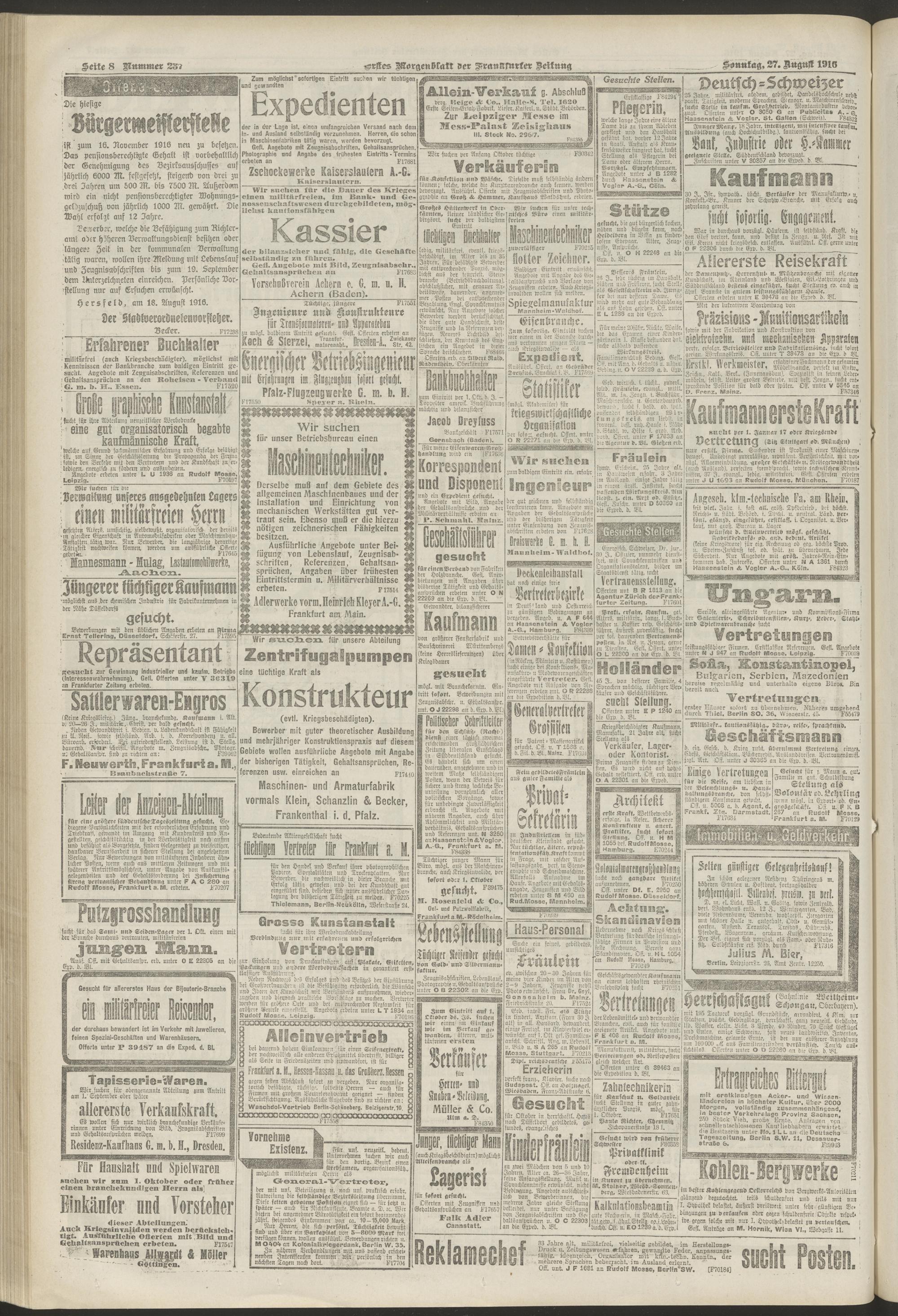 27.08.1916 = Nr. 237. Erstes Morgenblatt