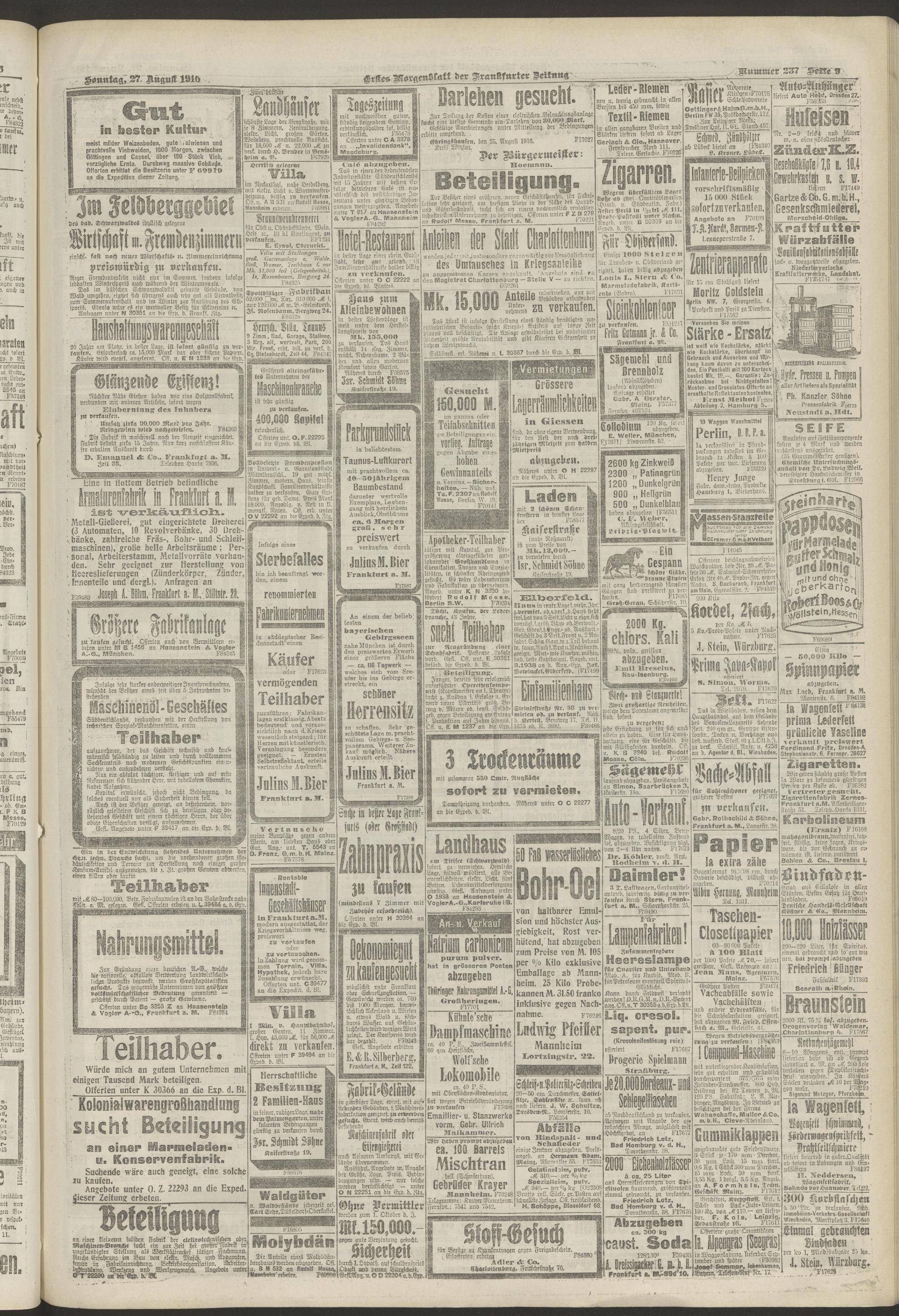 27.08.1916 = Nr. 237. Erstes Morgenblatt