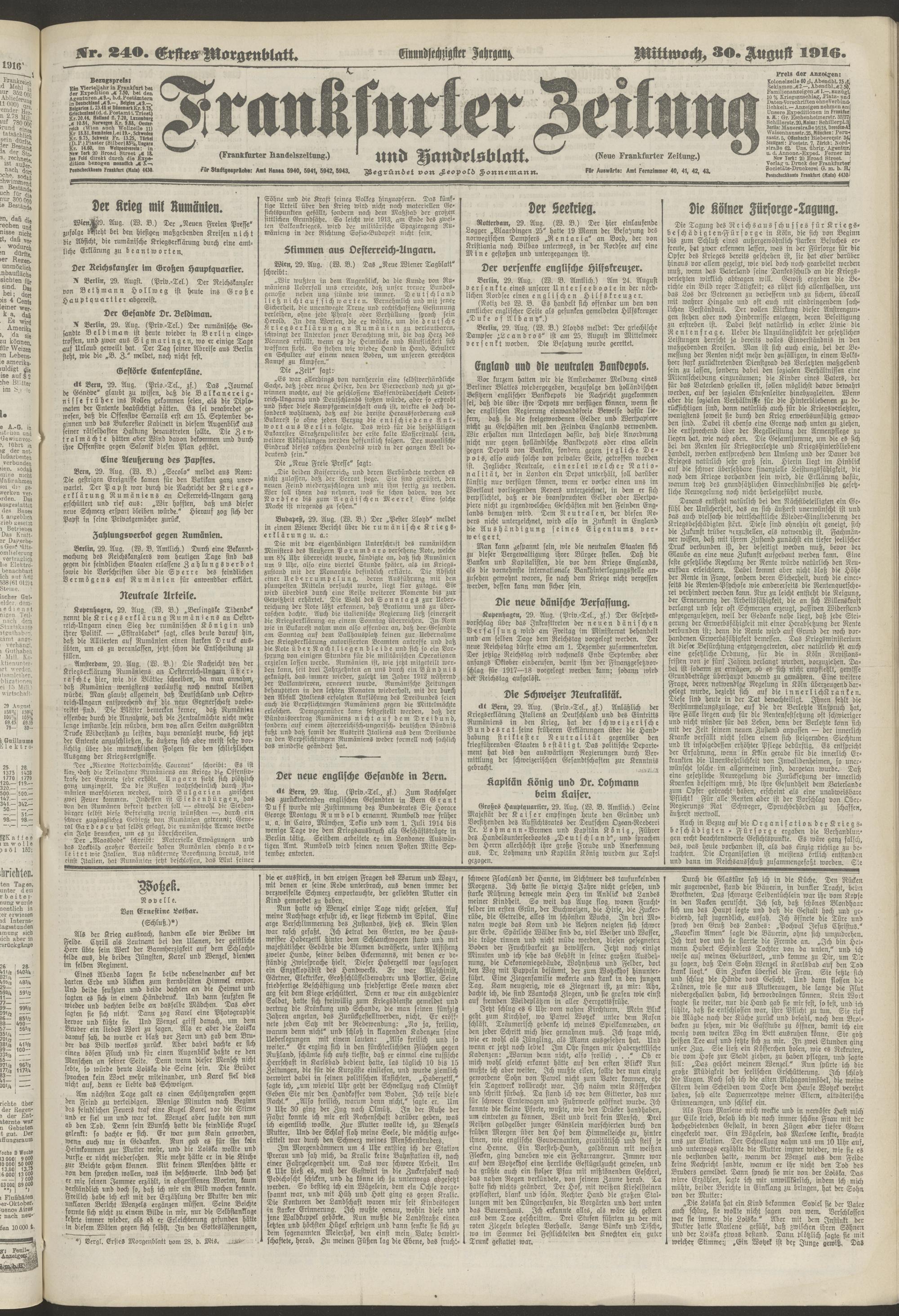 30.08.1916 = Nr. 240. Erstes Morgenblatt