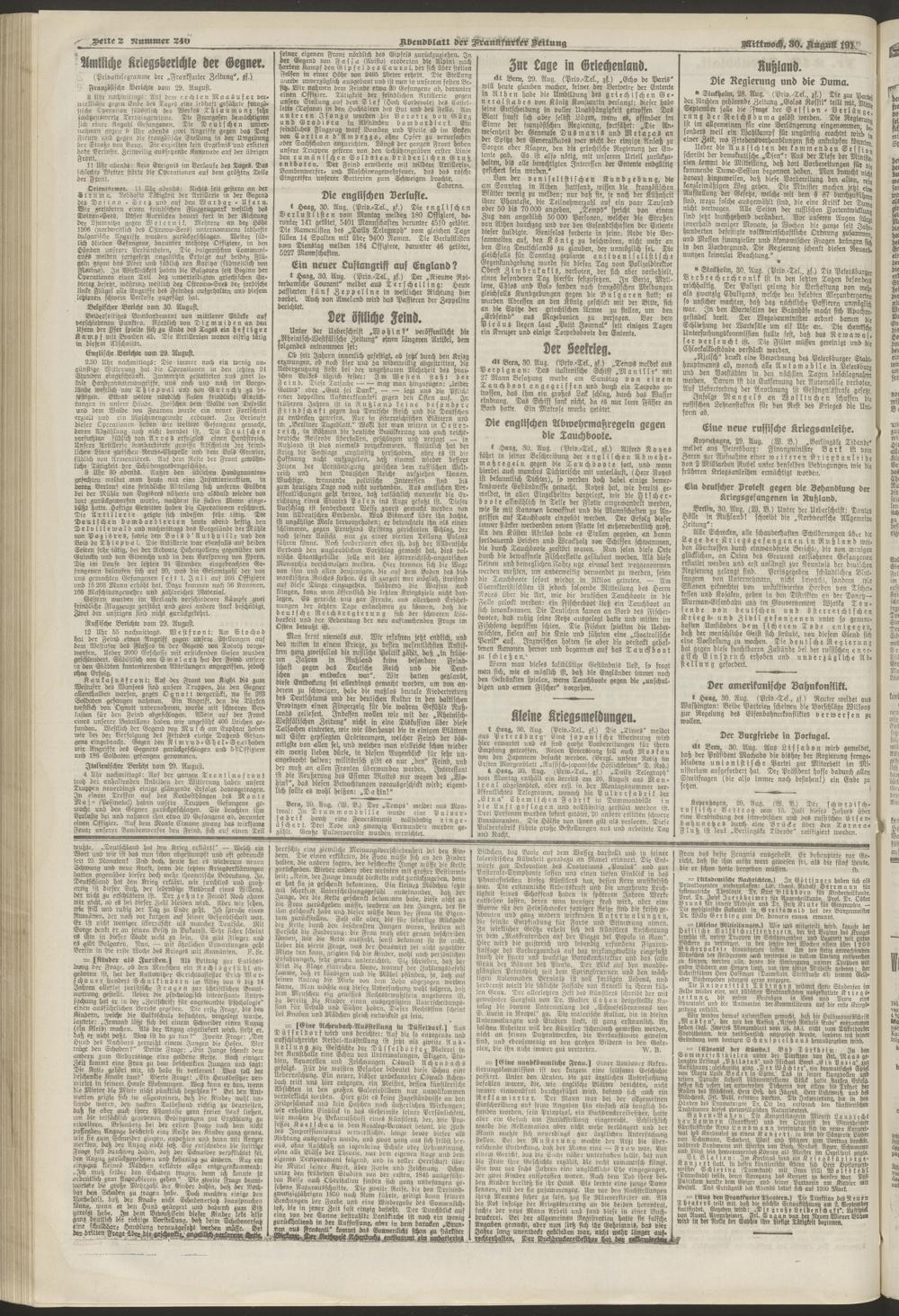 30.08.1916 = Nr. 240. Abendblatt