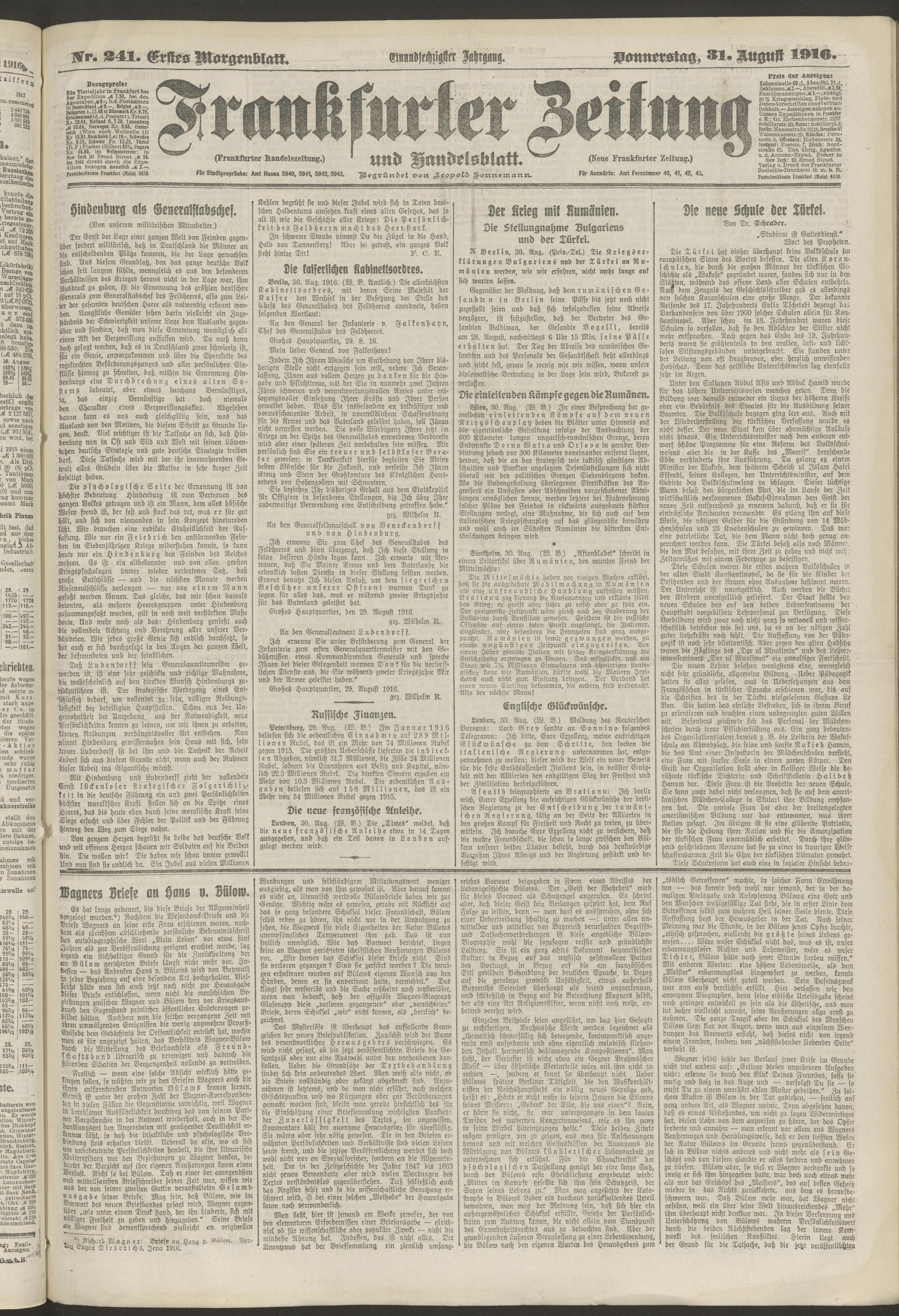 31.08.1916 = Nr. 241. Erstes Morgenblatt
