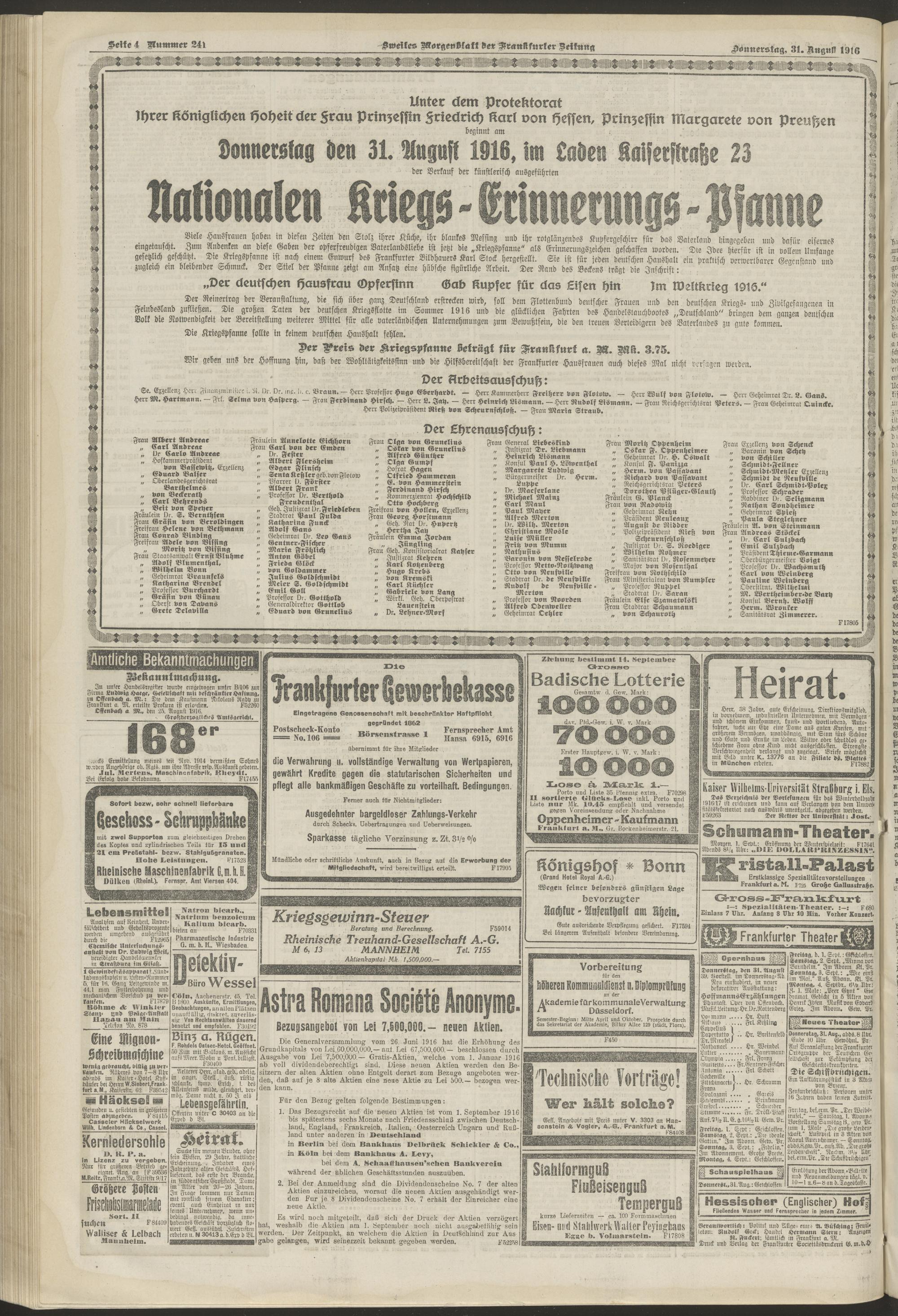 31.08.1916 = Nr. 241. Zweites Morgenblatt