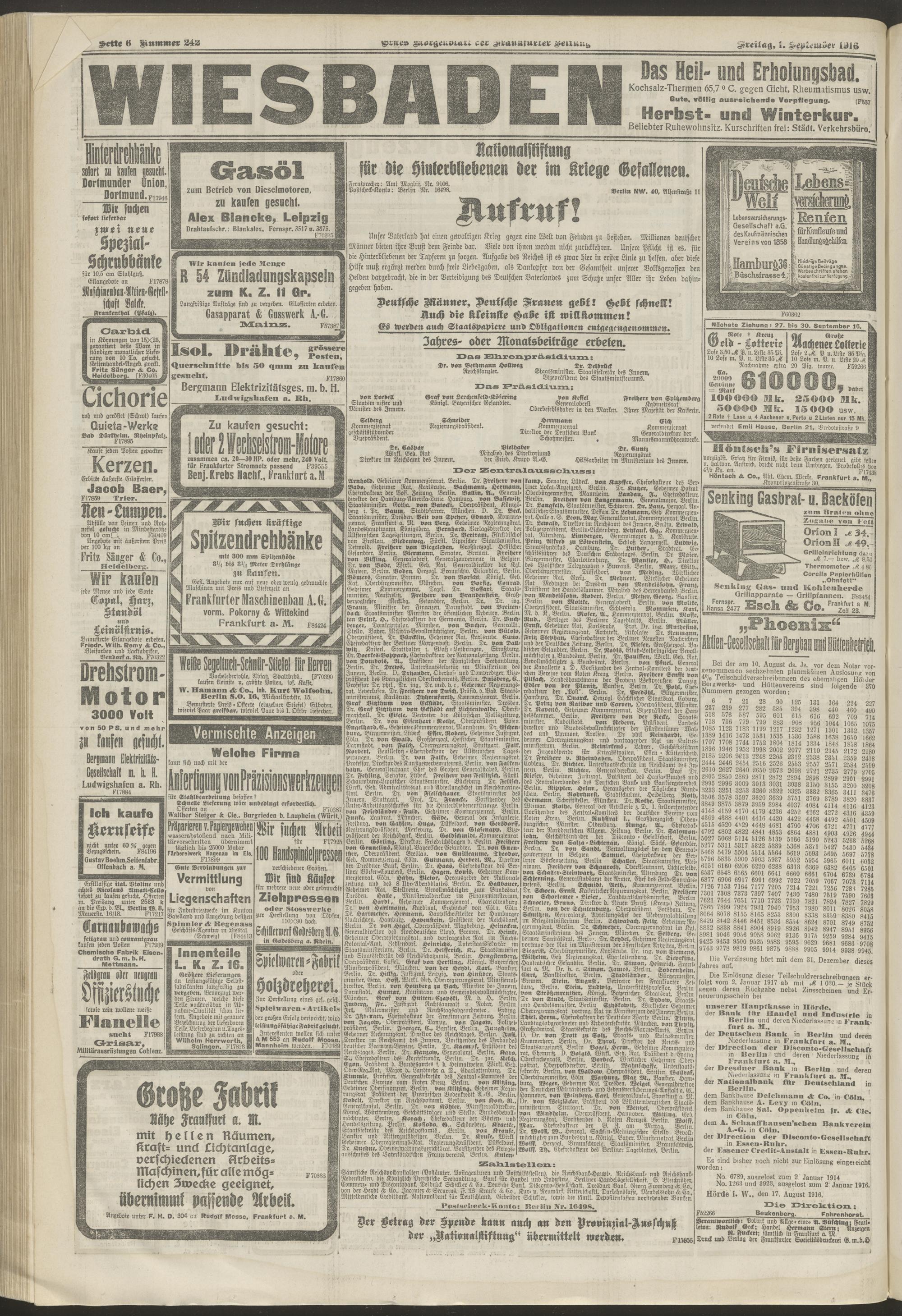 01.09.1916 = Nr. 242. Erstes Morgenblatt