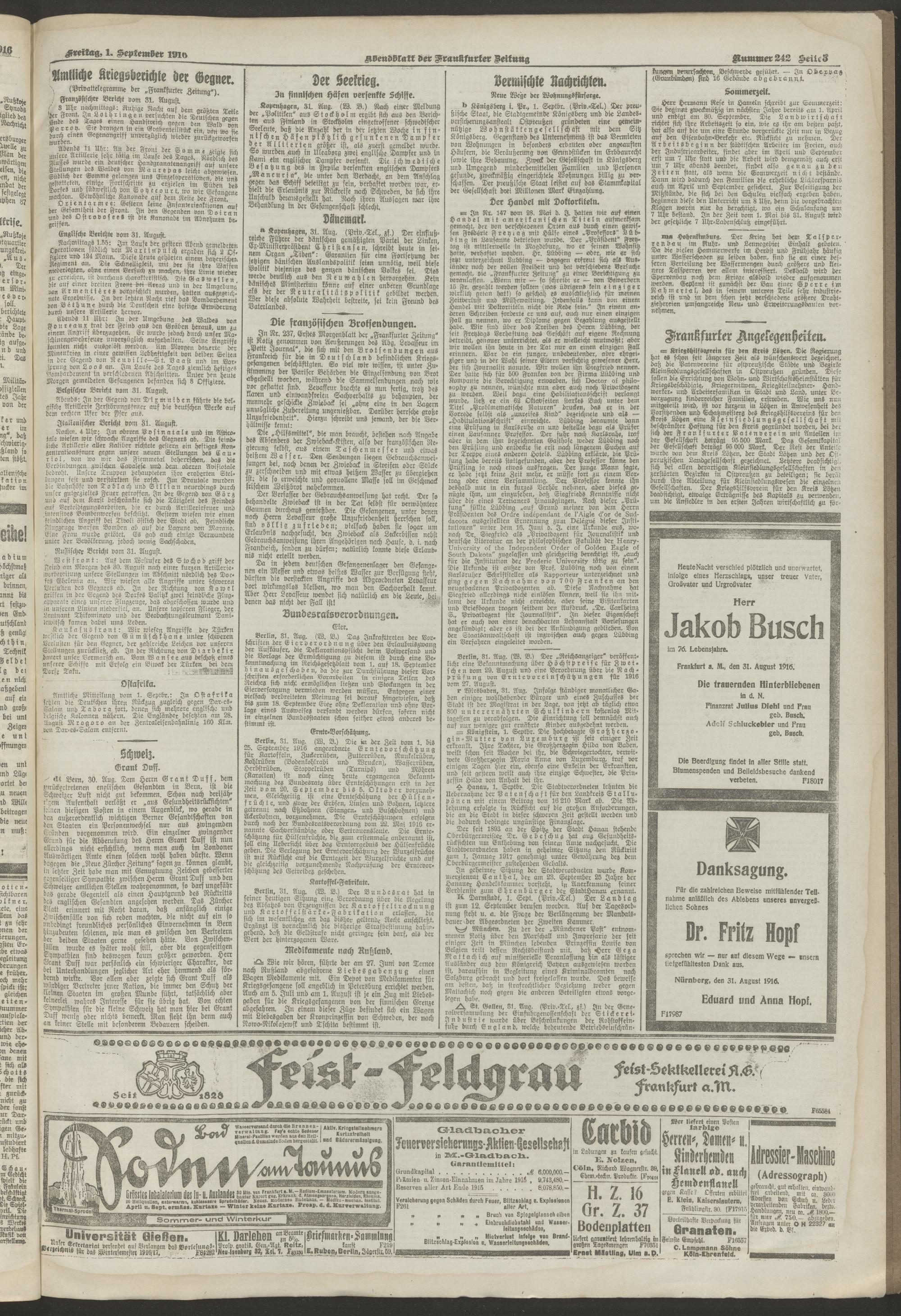 01.09.1916 = Nr. 242. Abendblatt