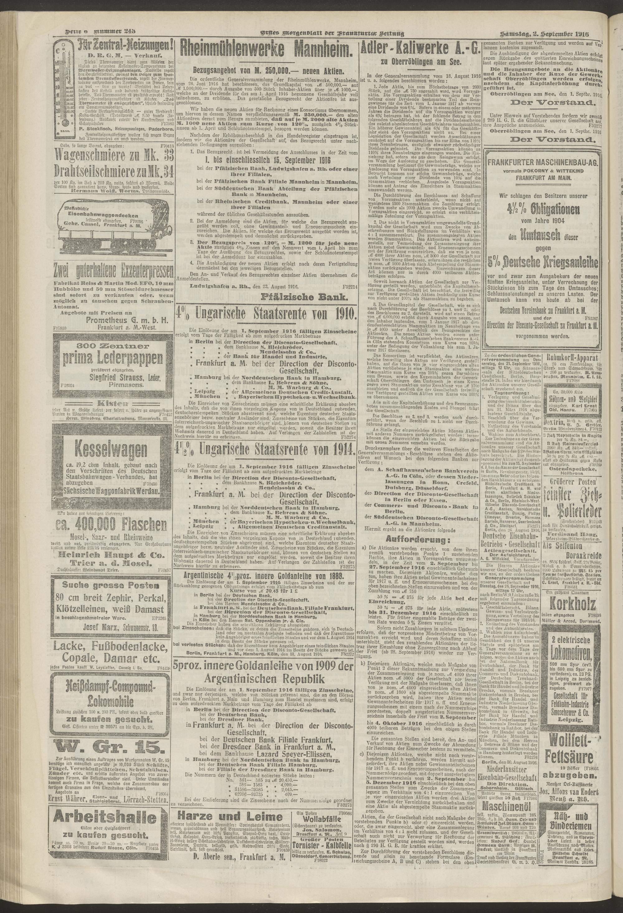02.09.1916 = Nr. 243. Erstes Morgenblatt