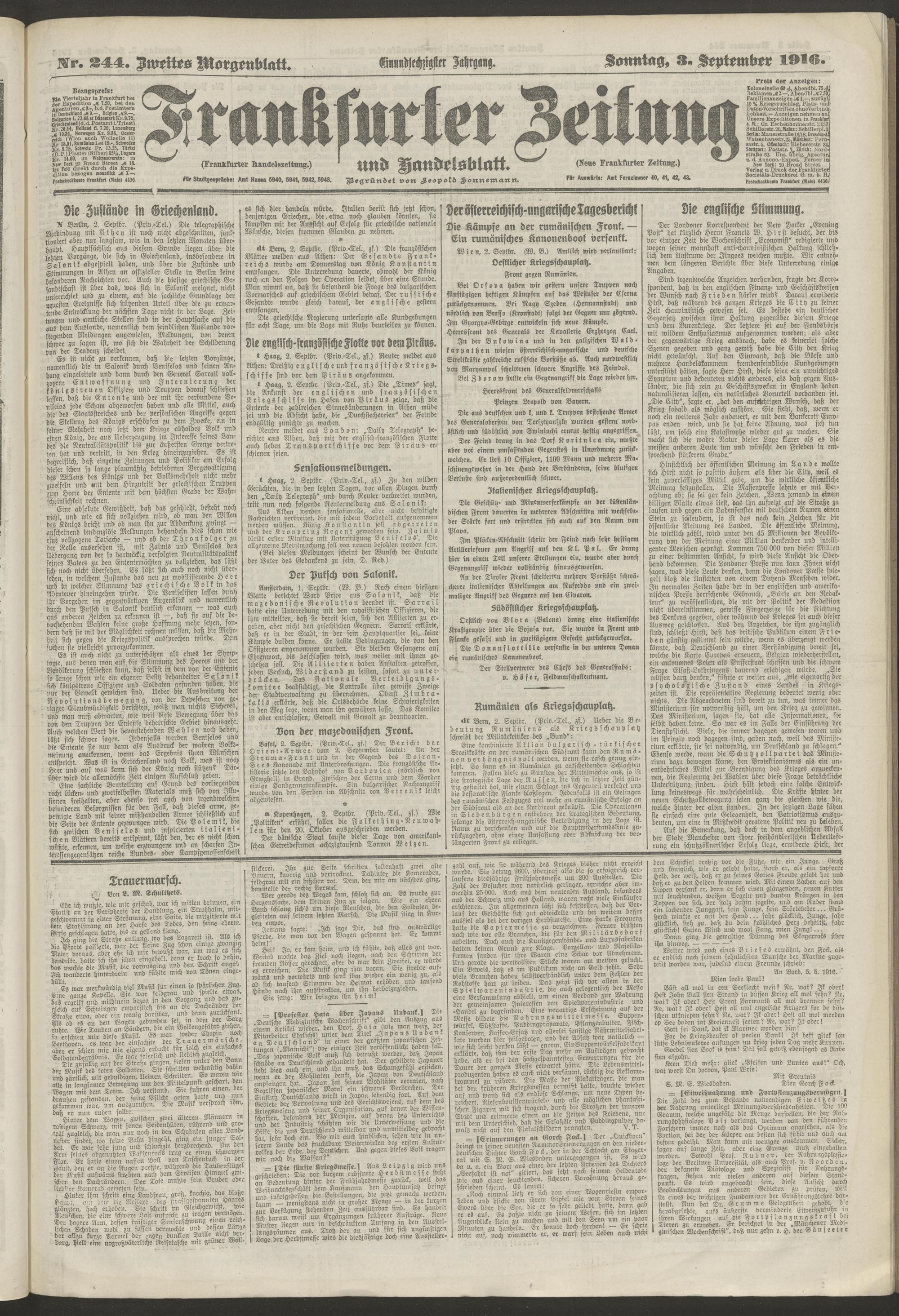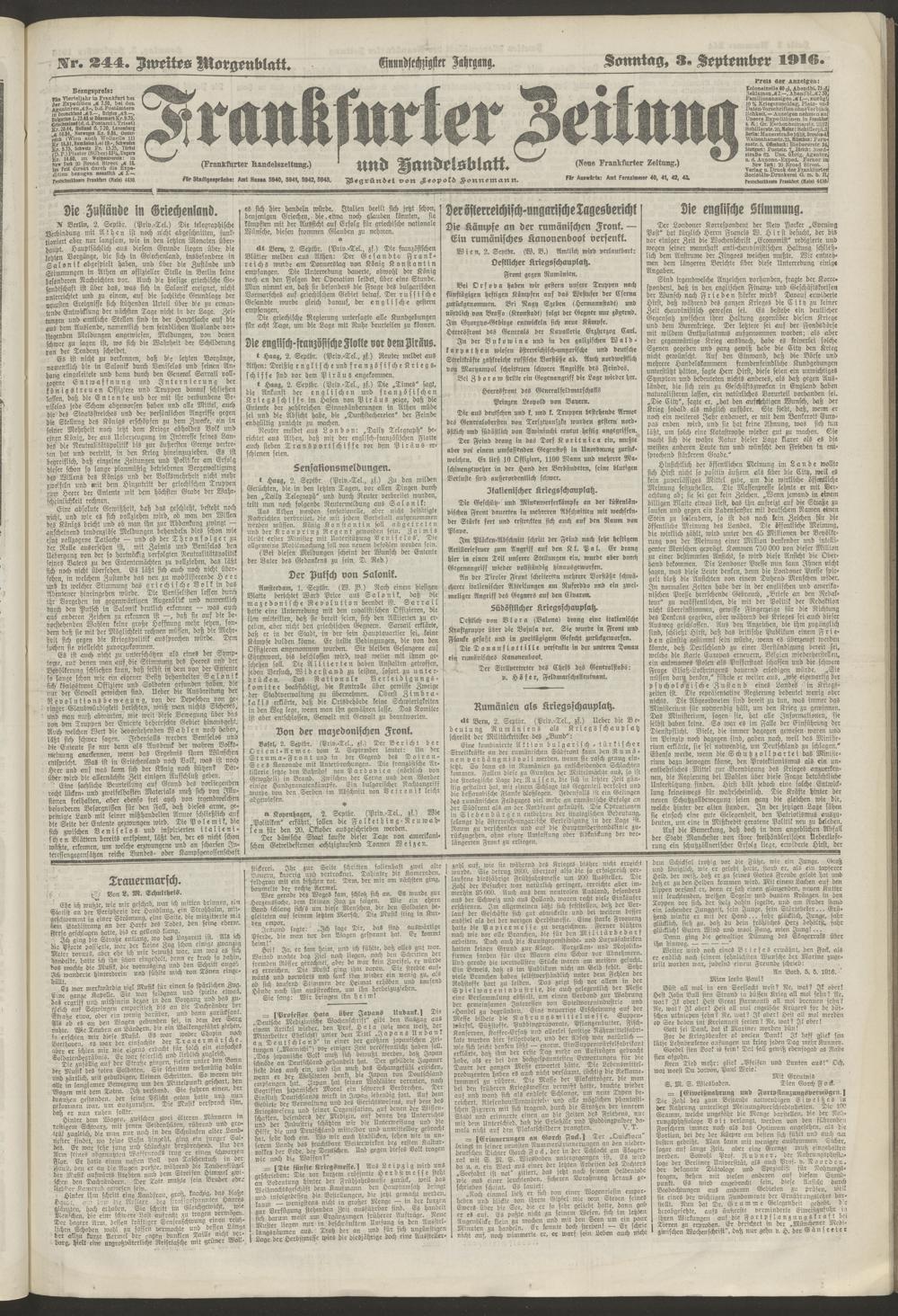 03.09.1916 = Nr. 244. Zweites Morgenblatt