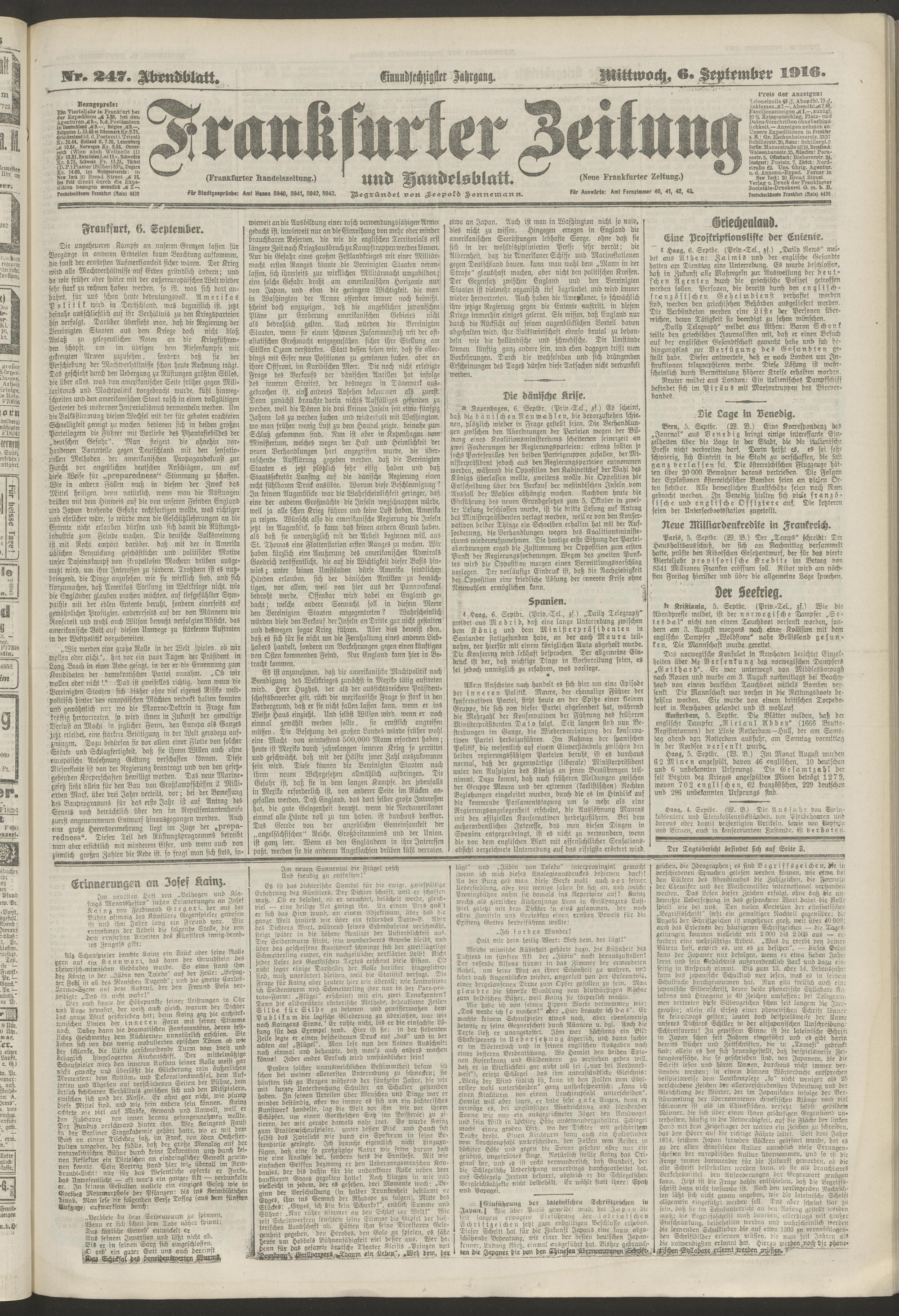 06.09.1916 = Nr. 247. Abendblatt