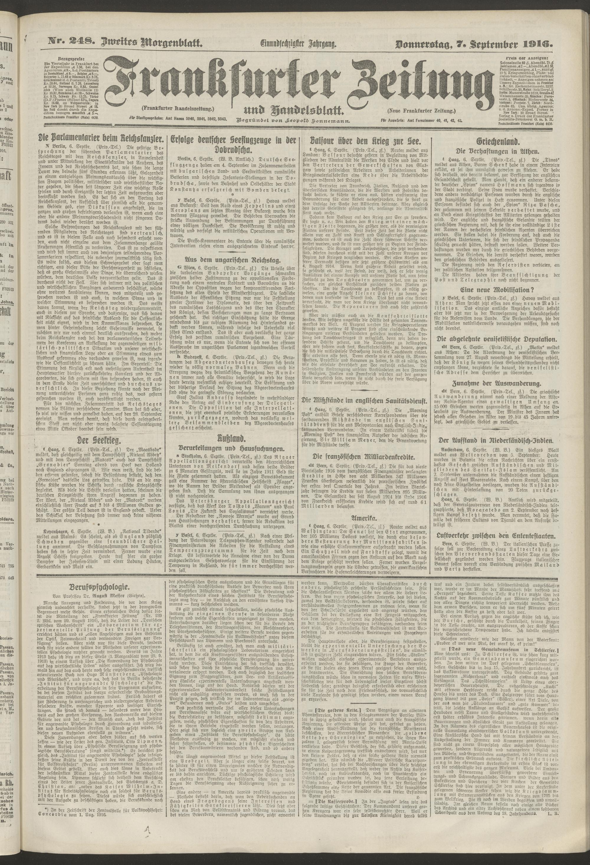 07.09.1916 = Nr. 248. Zweites Morgenblatt