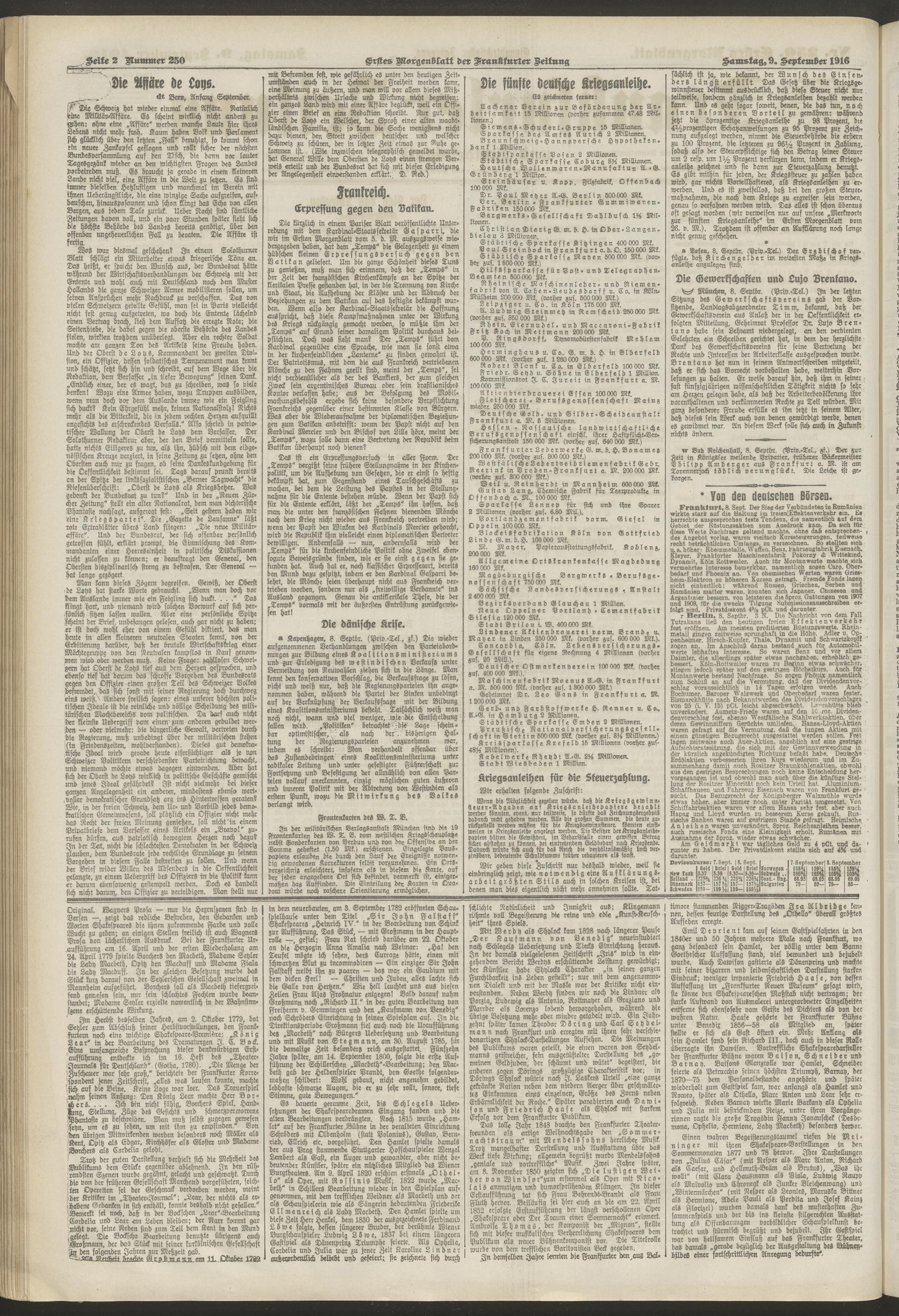 09.09.1916 = Nr. 250. Erstes Morgenblatt