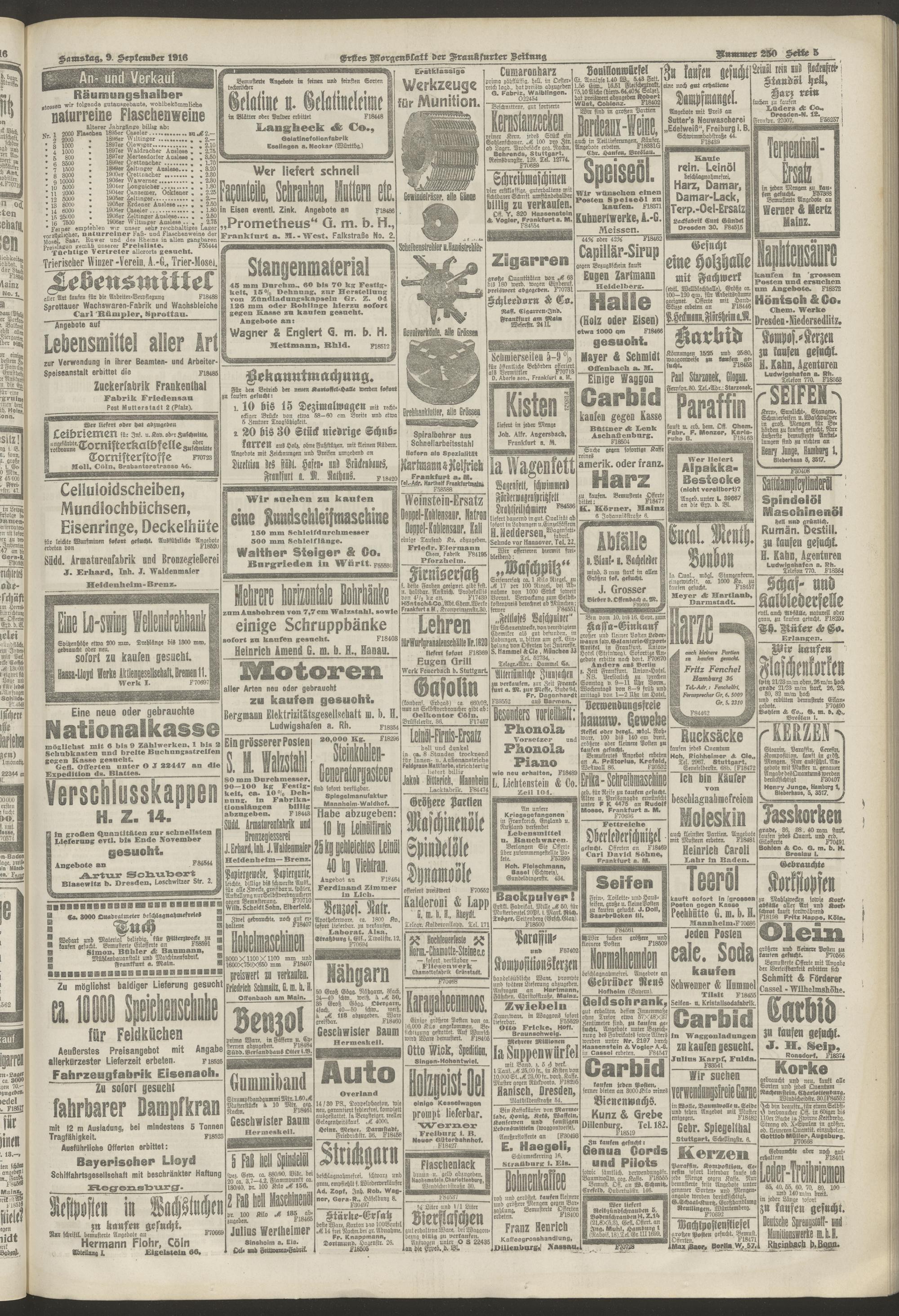 09.09.1916 = Nr. 250. Erstes Morgenblatt