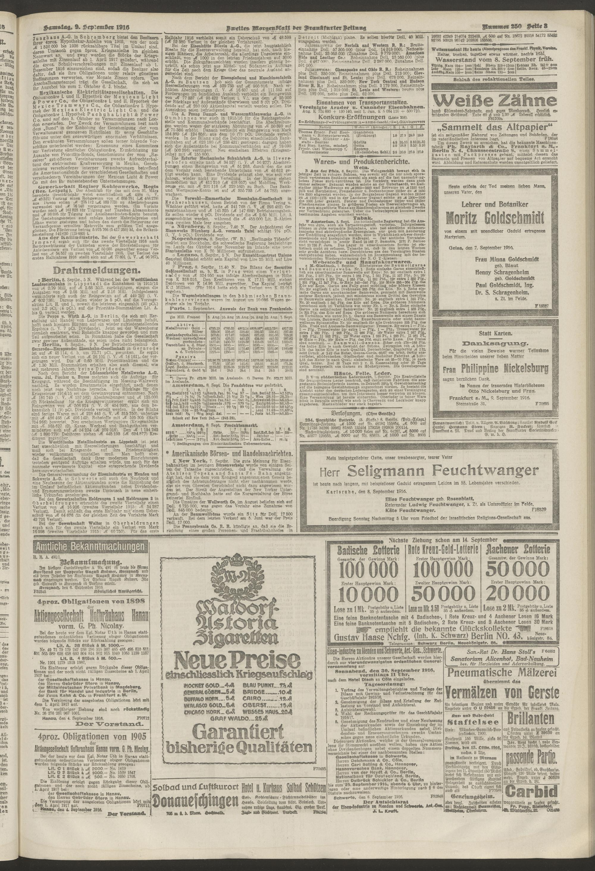09.09.1916 = Nr. 250. Zweites Morgenblatt