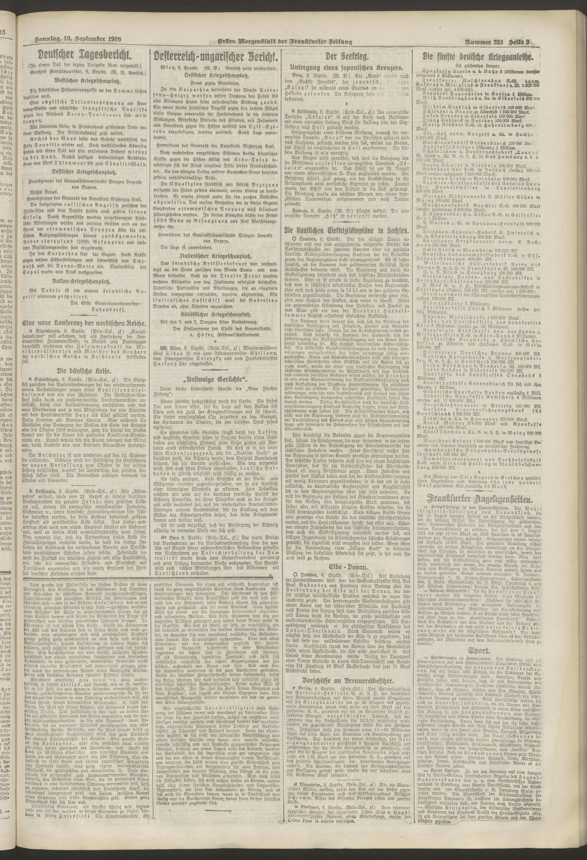 10.09.1916 = Nr. 251. Erstes Morgenblatt