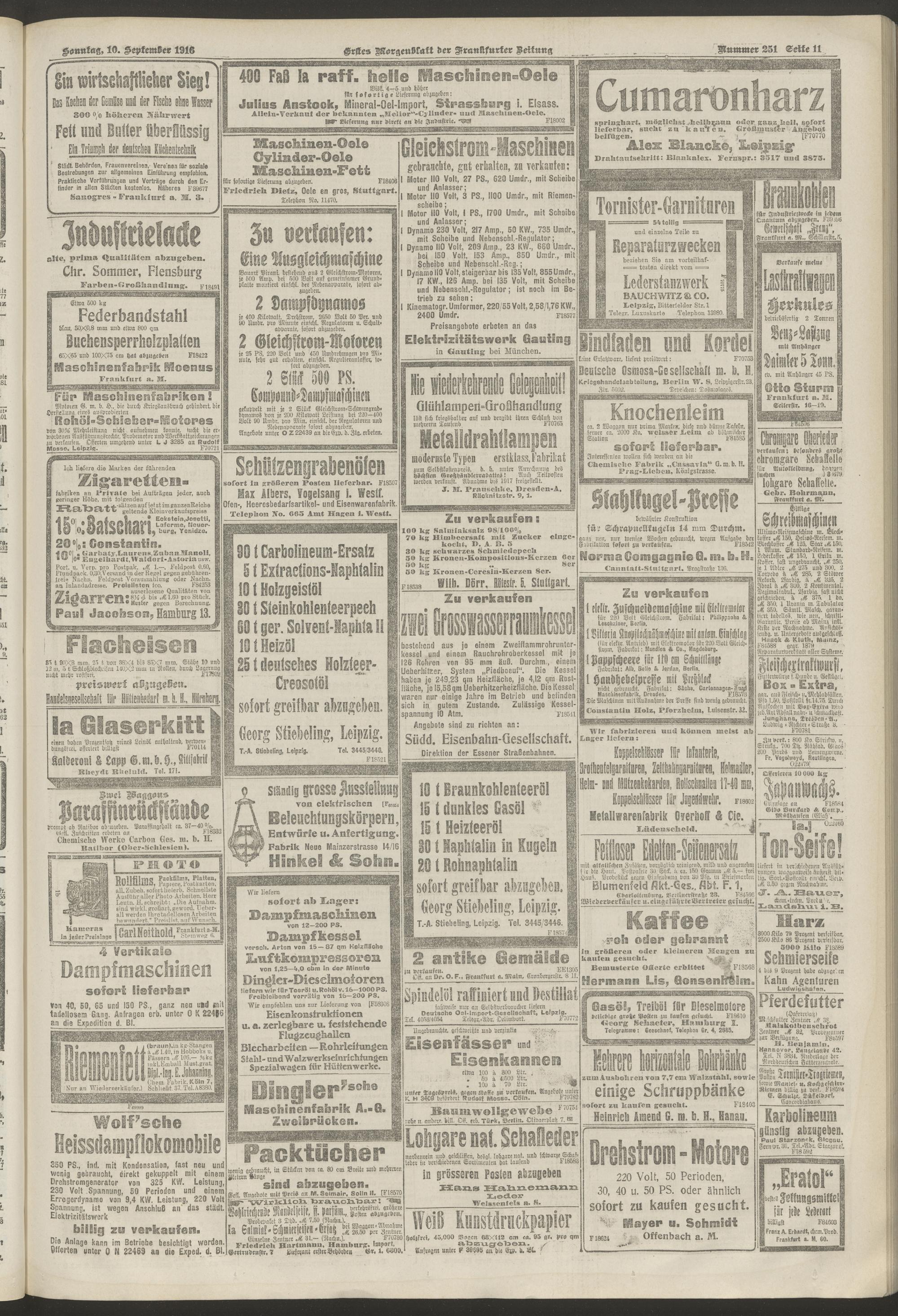 10.09.1916 = Nr. 251. Erstes Morgenblatt