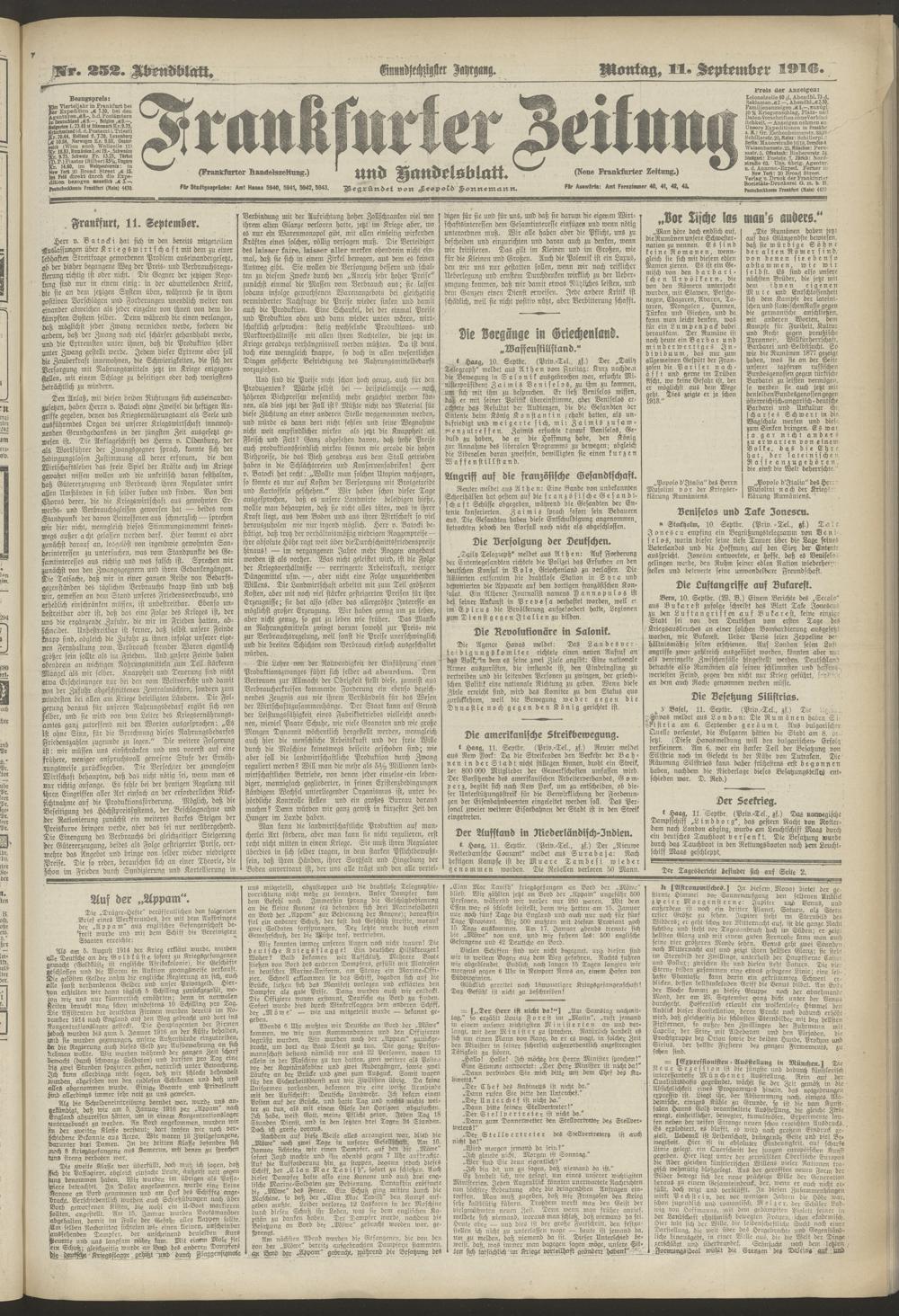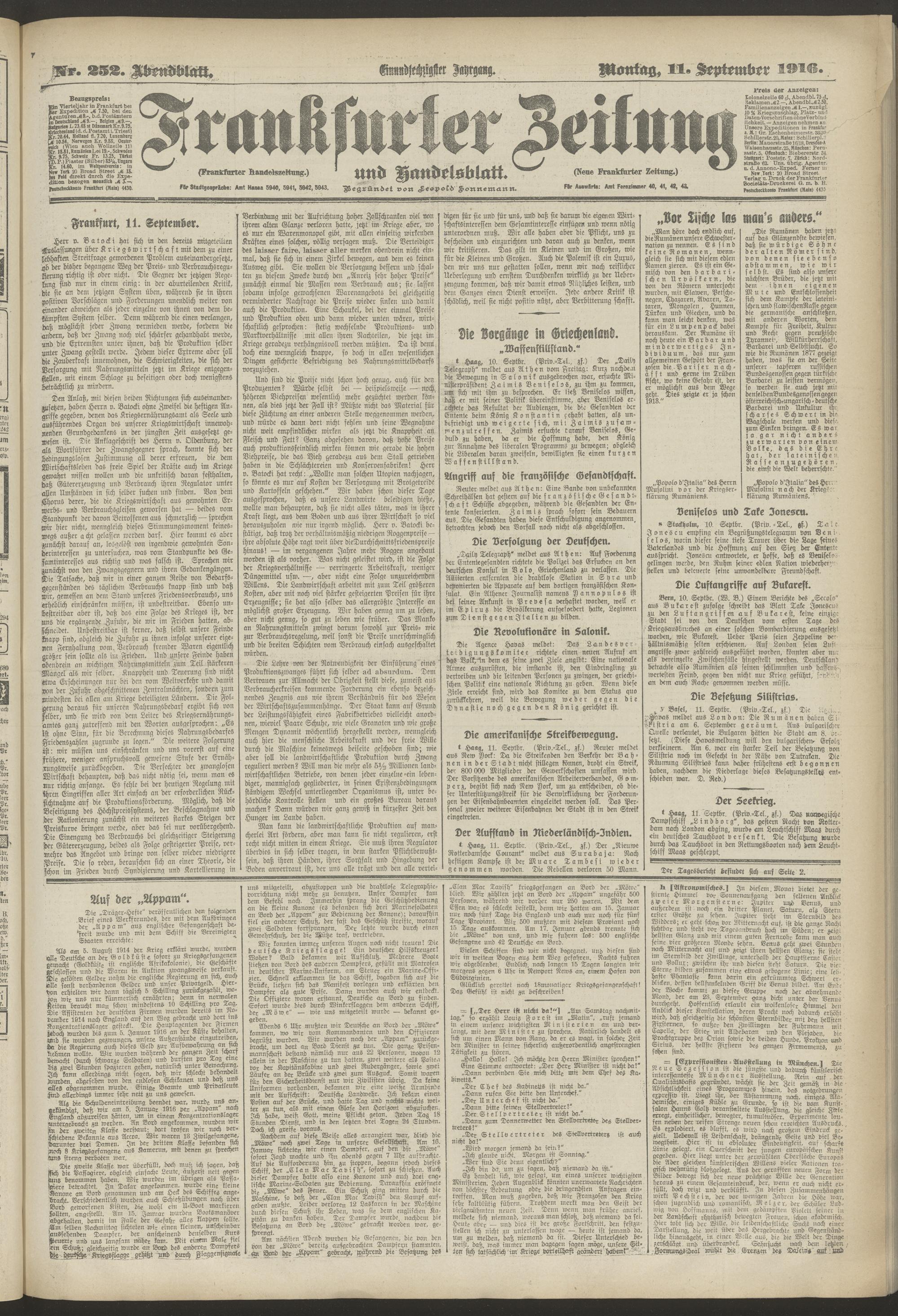 11.09.1916 = Nr. 252. Abendblatt