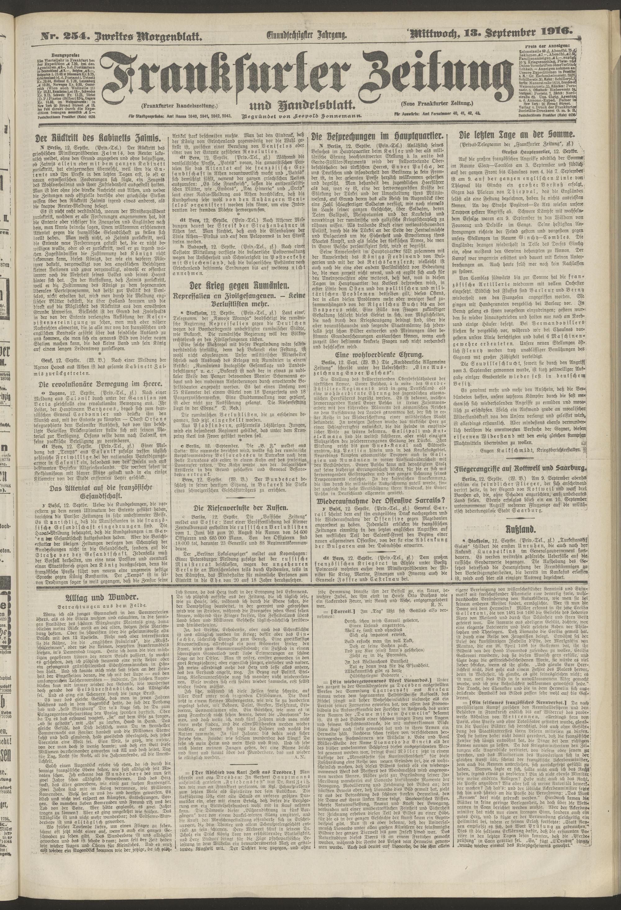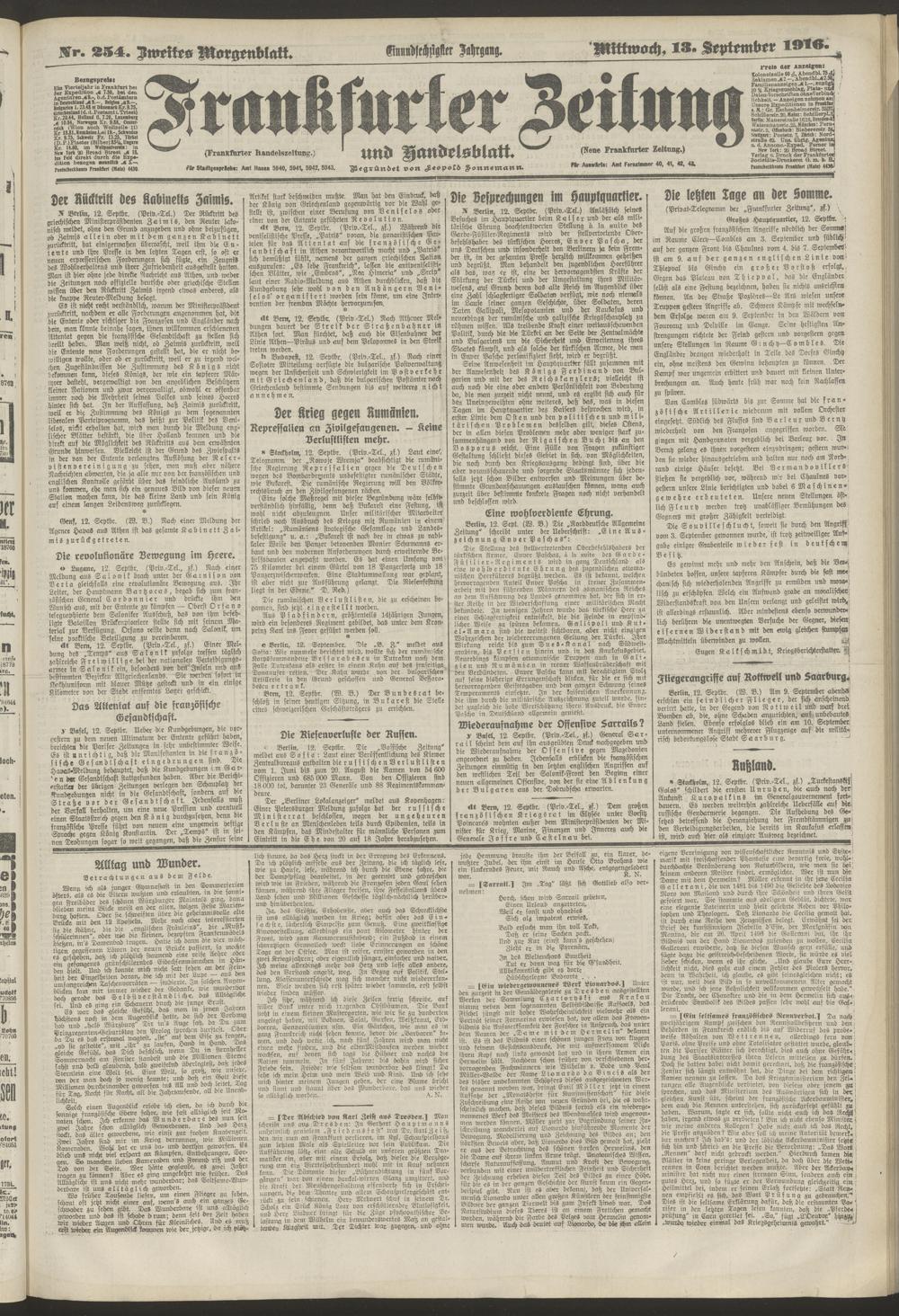 13.09.1916 = Nr. 254. Zweites Morgenblatt