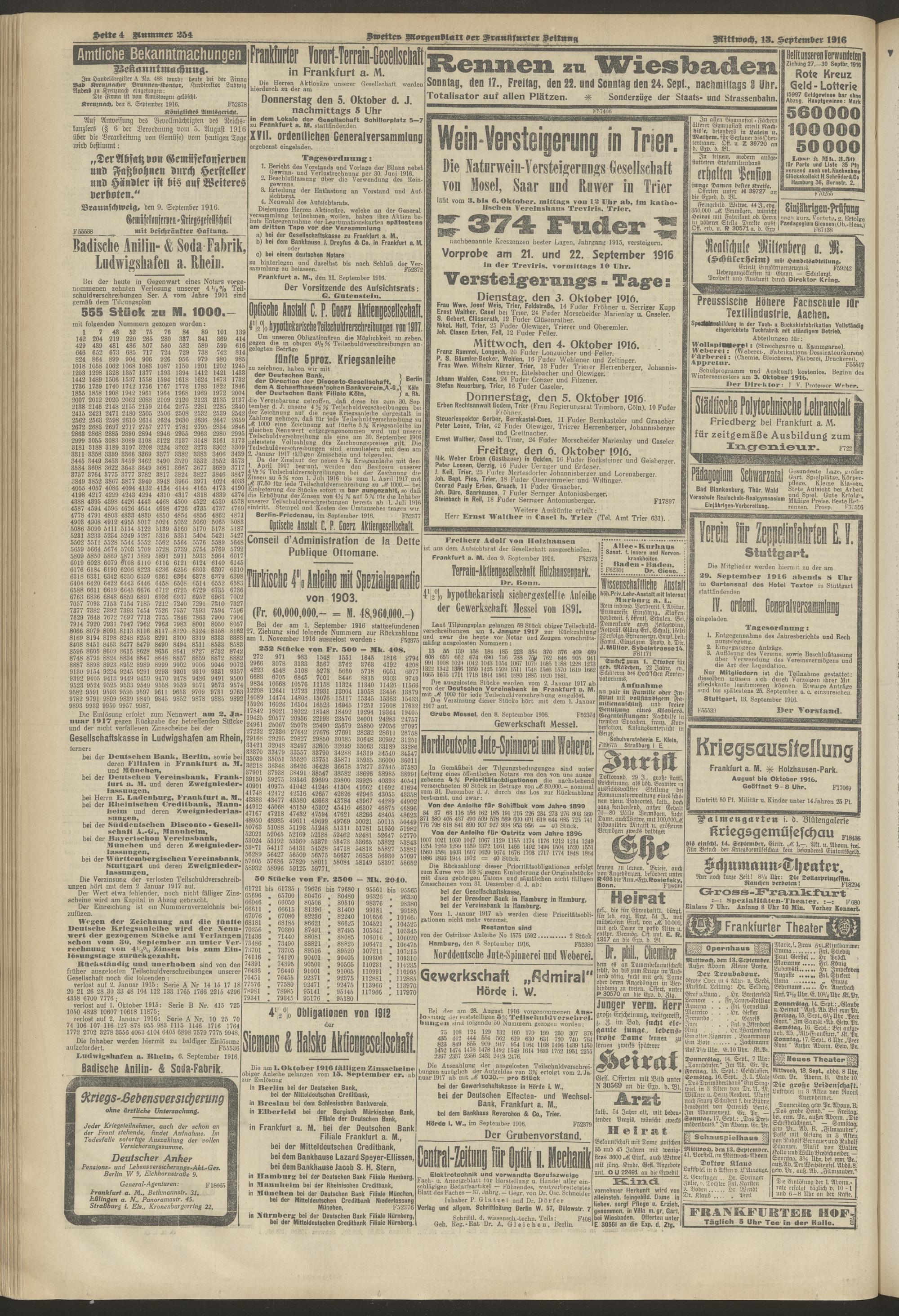 13.09.1916 = Nr. 254. Zweites Morgenblatt