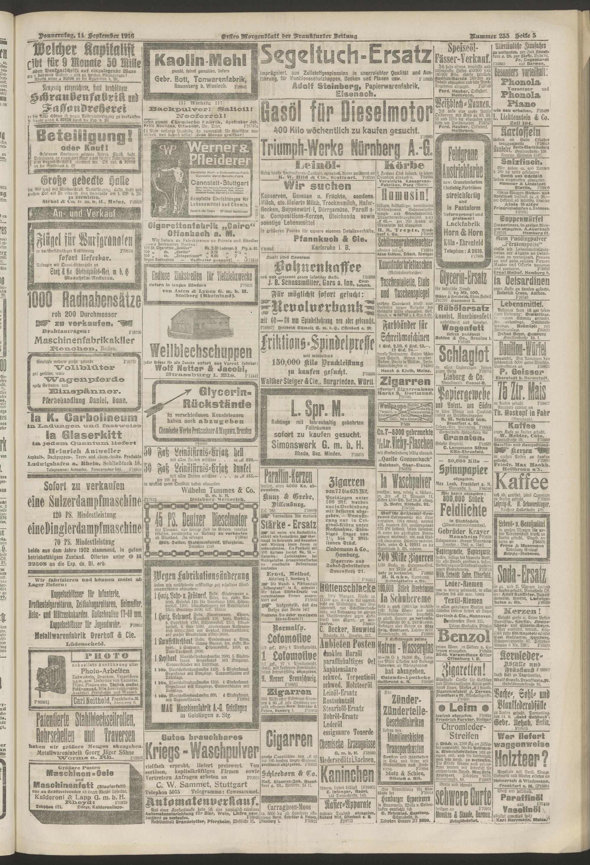 14.09.1916 = Nr. 255. Erstes Morgenblatt