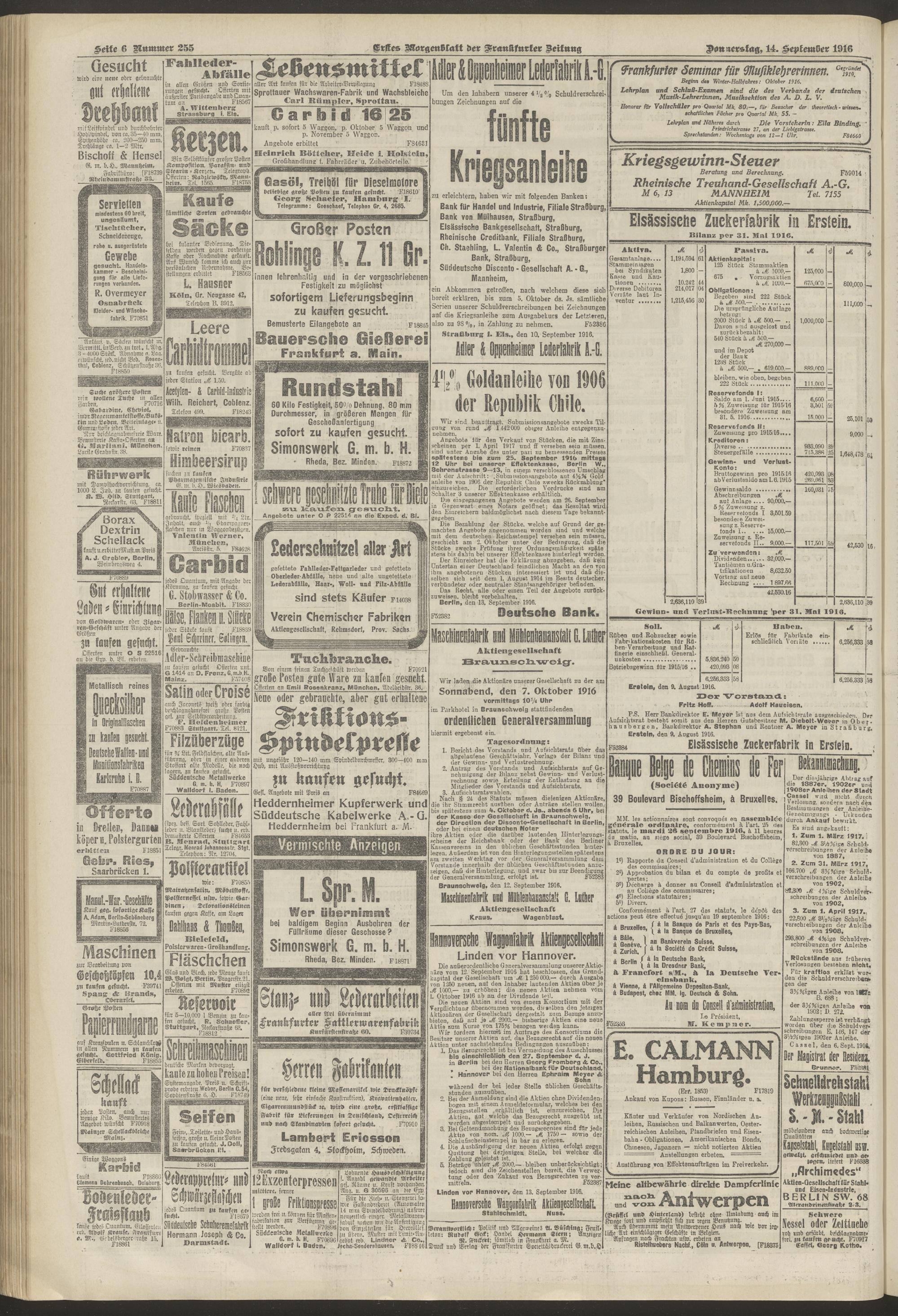 14.09.1916 = Nr. 255. Erstes Morgenblatt