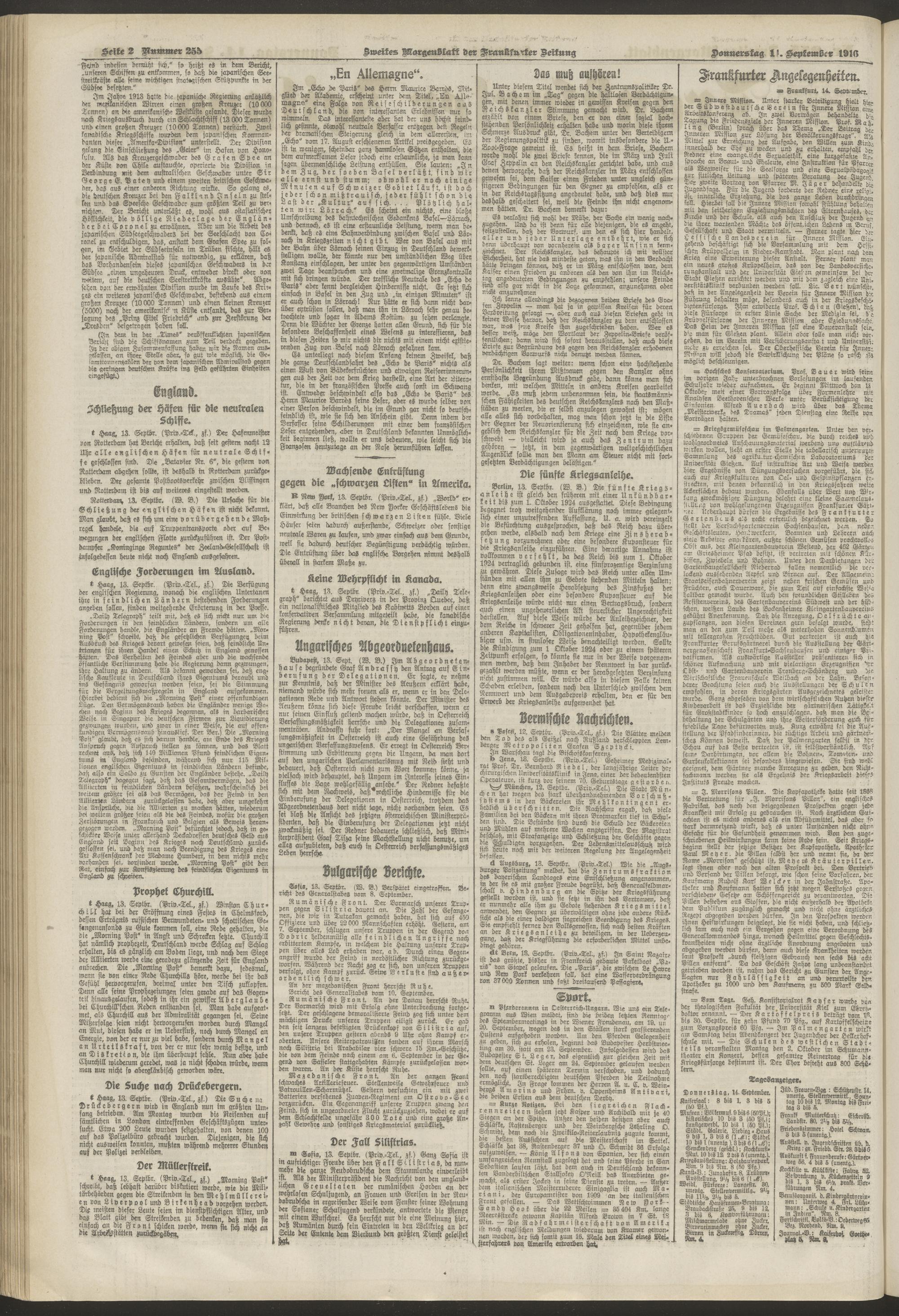 14.09.1916 = Nr. 255. Zweites Morgenblatt