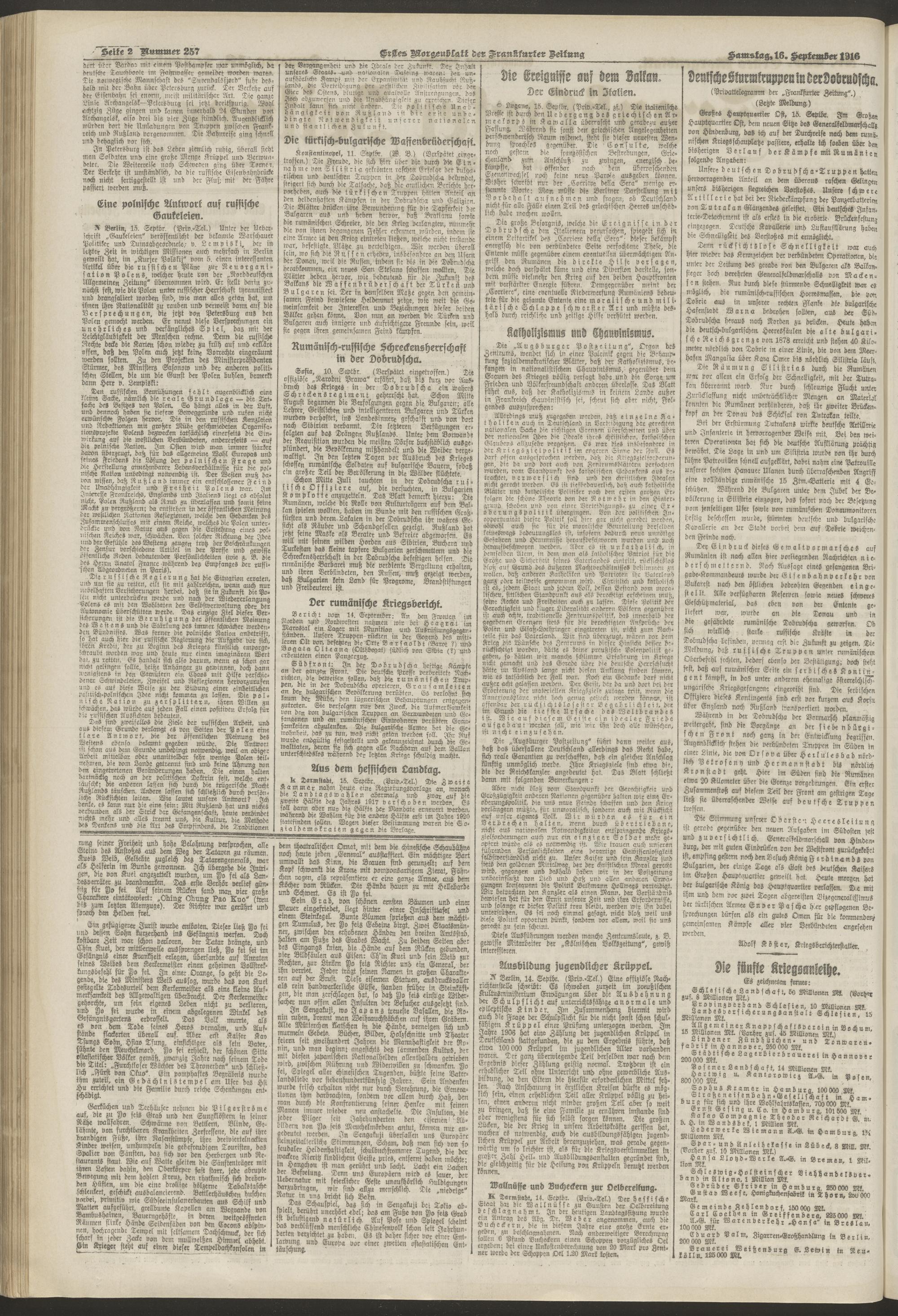 16.09.1916 = Nr. 257. Erstes Morgenblatt